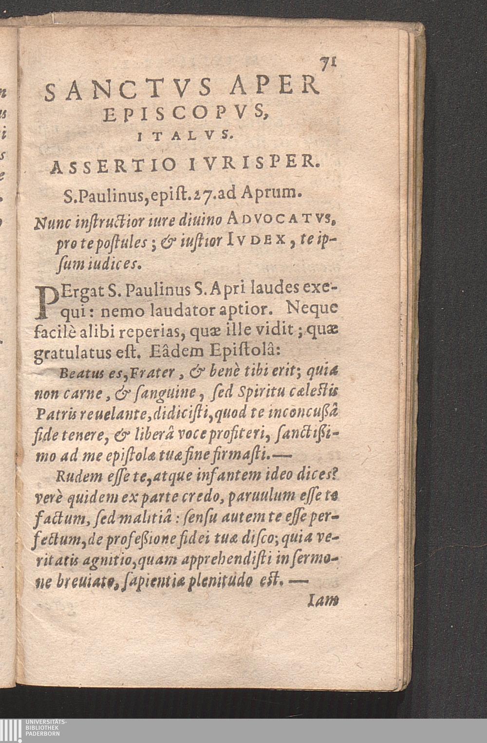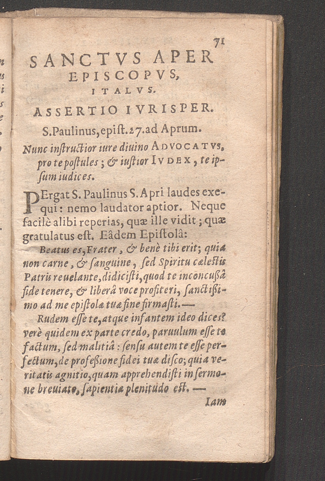 Sanctvs Aper Episcopvs, Italvs.
