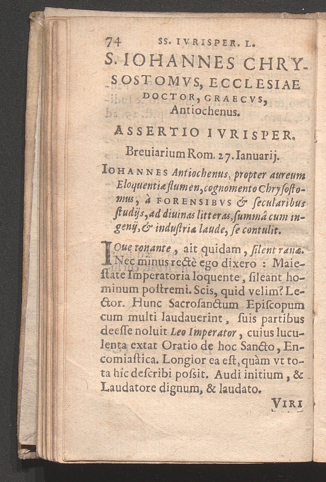 S. Iohannes Chrystomvs, Ecclesiae Doctor, Graecvs, Antiochenus.