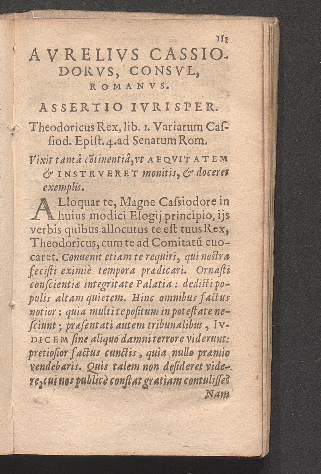 Avrelivs Cassiodorvs, Consvl, Romanvs.