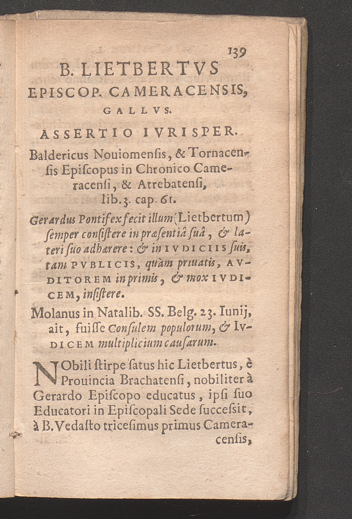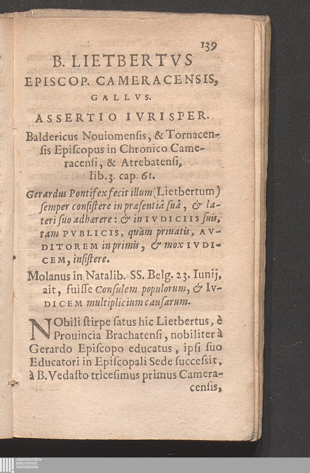 B. Lietbertvs Episcop. Cameracensis, Gallvs.
