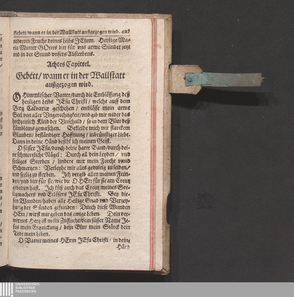 Achtes Capitel. Gebett/ wann er auff der Wallstatt außgezogen wird.