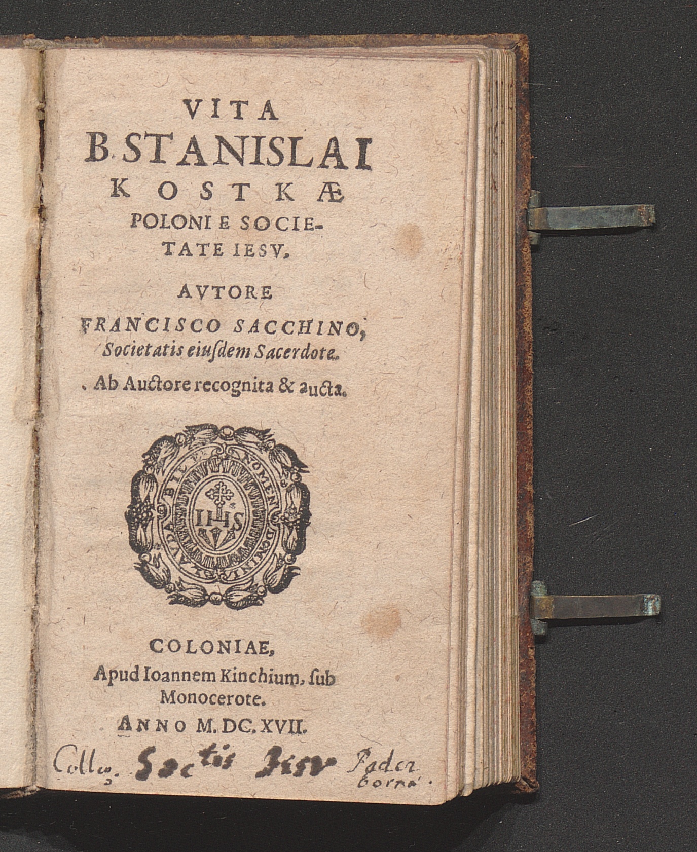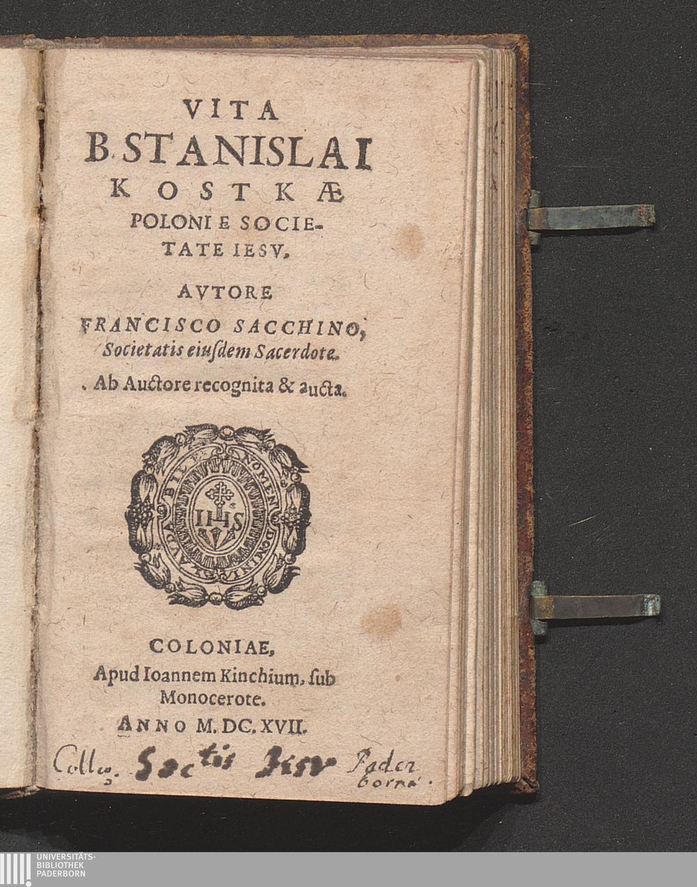 Vita B. Stanislai Kostkæ Poloni E Societate Iesv / Avtore Francisco Sacchino, Societatis eiusdem Sacerdote