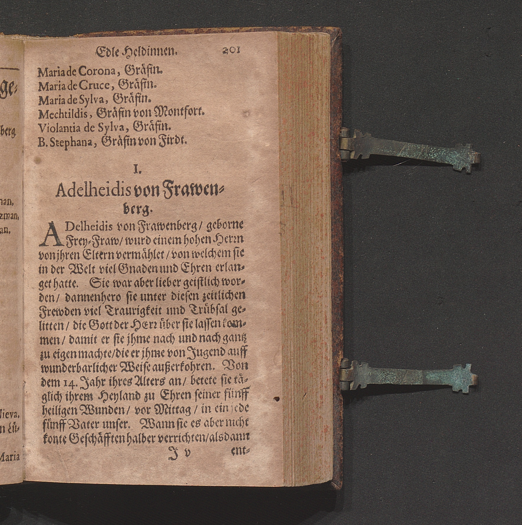 Prediger-Ordens Edle Heldinnen/ Das ist: Kurtze Lebens-Beschreibung/ deren H. und Gottseligen Schwestern/ so von Königlichem/ Fürstlichem/ Gräflichem oder sonsten Hoch-Adelichem Geblüth gebohren. Zugleich mit sonderbarer Heiligkeit und Tugenden geläuchtet/ und jhrem himmlischen Bräutigamb Jesu/ im H. Prediger-Orden/ biß in den Todt beständig gedienet haben / Mit Fleiß zusammengetragen/ durch P. Fr. Antoninvm Schauff/ Confluentinum Ordin. Præd. SS. Theol. Præsentatum