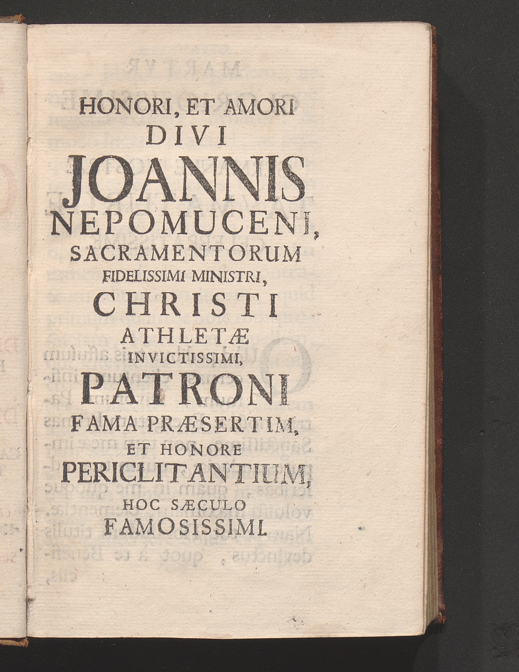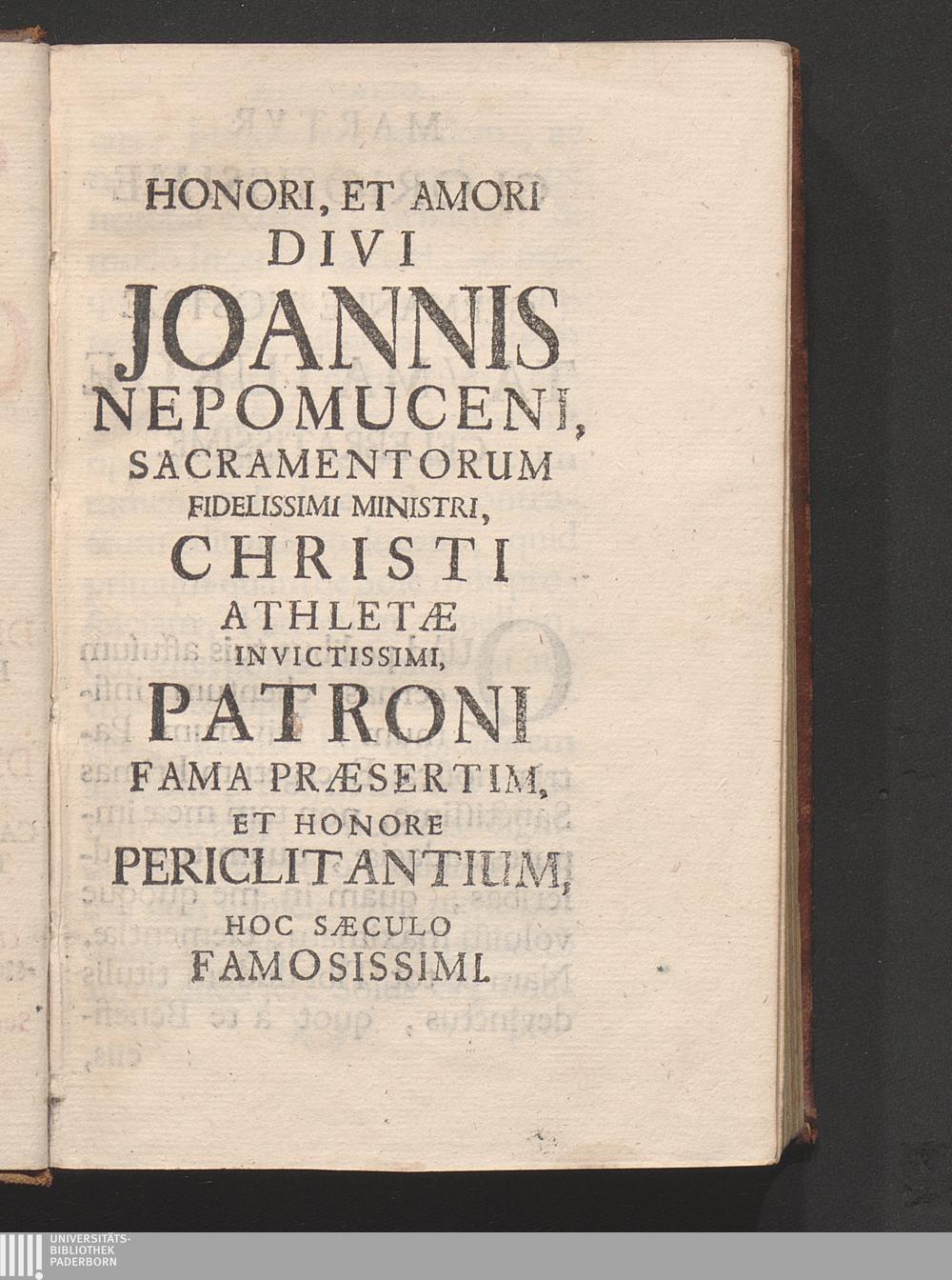 Honori, Et Amori Divi Joannis Nepomuceni, Sacramentorum Fidelissimi Ministri, Christi[...]