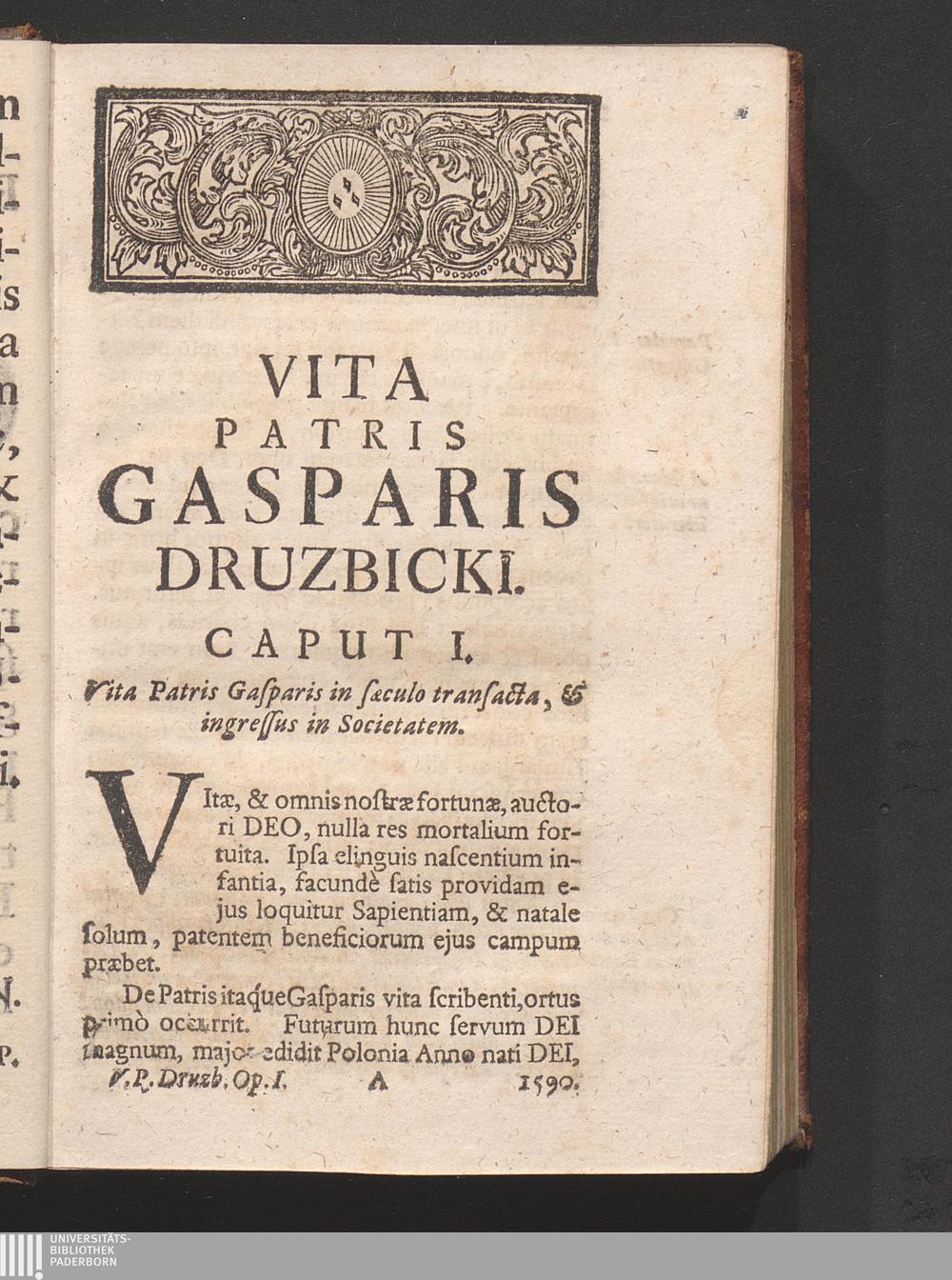 Caput I. Vita P. Gasparis Druzbicki in sæculo transacta, & ingressus in Societat[...]