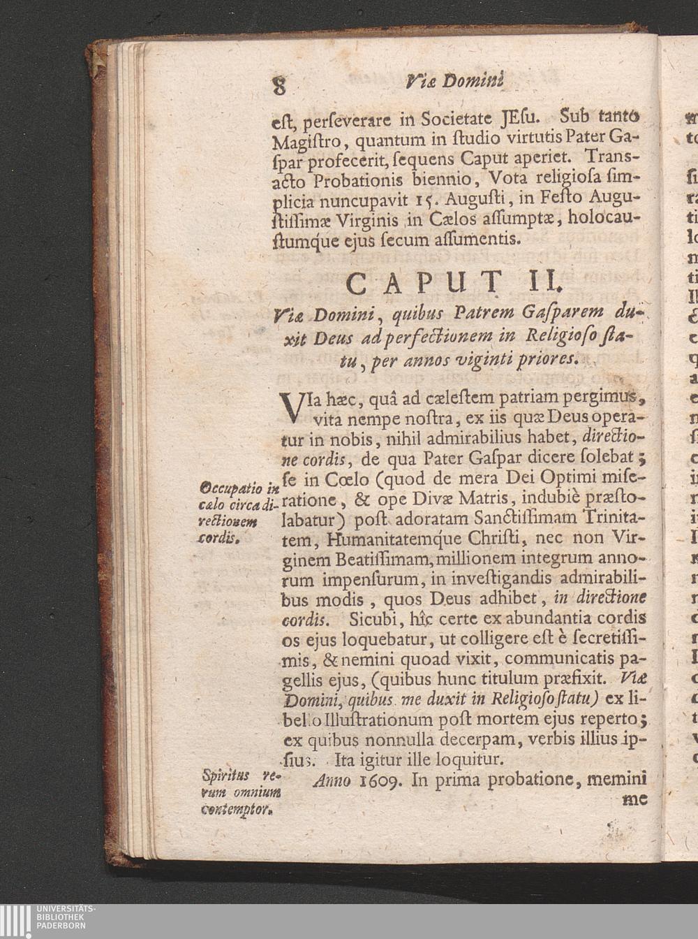 Caput II. Viæ Domini, quibus P. Gasparem duxit Deus ad perfectionem in Religioso[...]