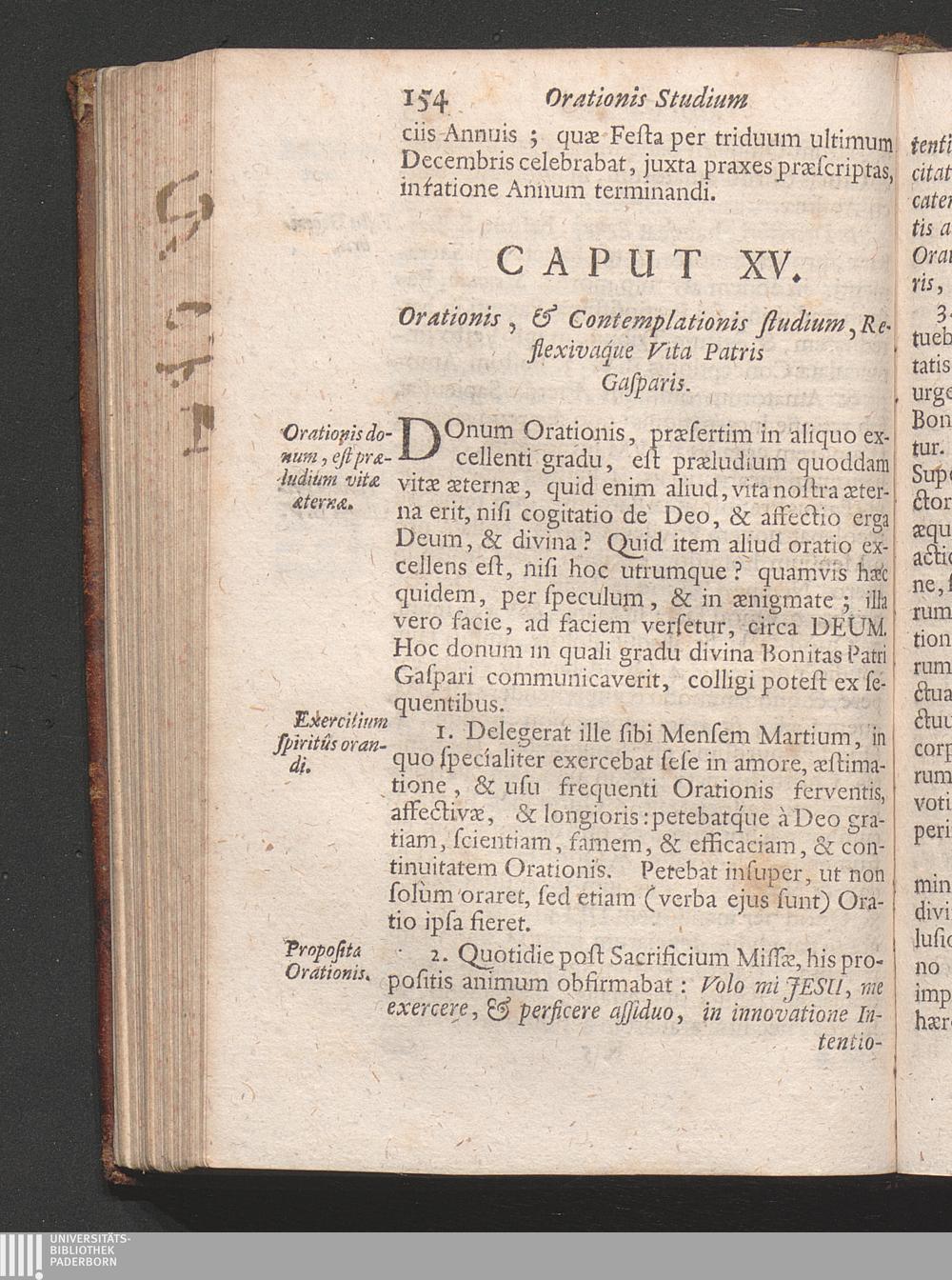 Caput XV. Orationis, & contemplationis studium, reflexiváque vita Patris Gaspari[...]