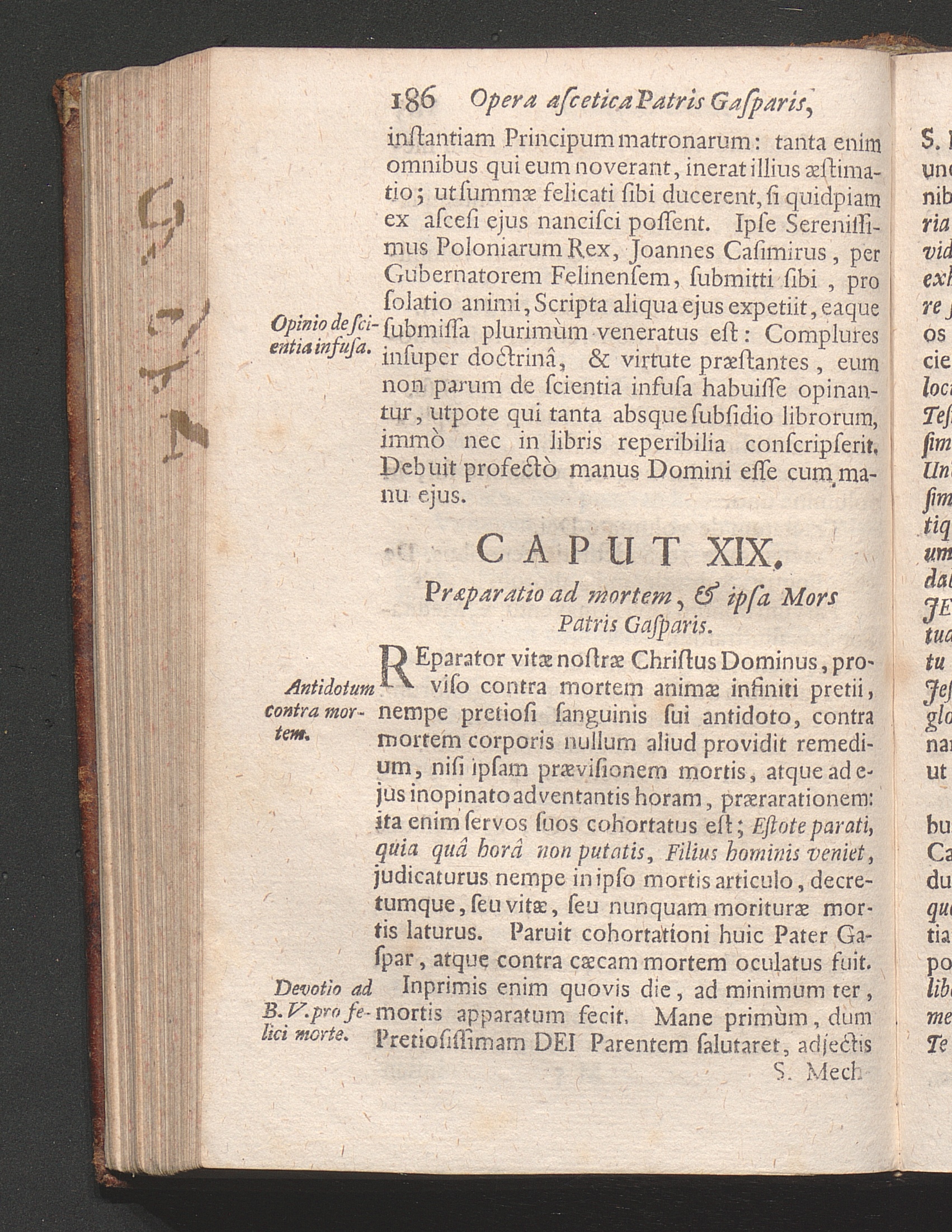 Caput XIX. Præparatio ad mortem, & ipsa Mors Patris Gasparis.