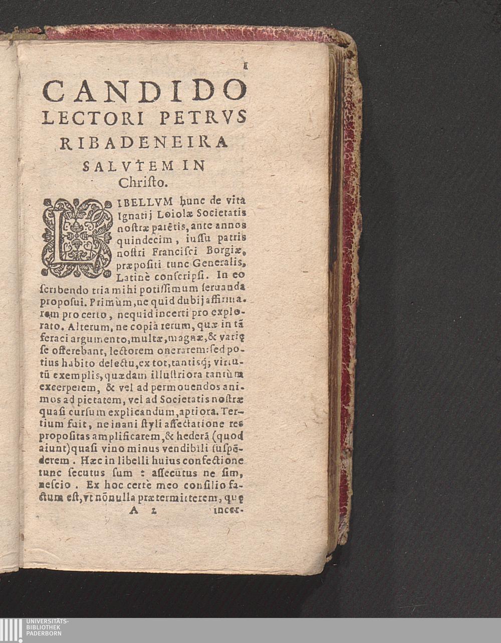 Candido Lectori Petrvs Ribadeneira Salvtem In Christo.