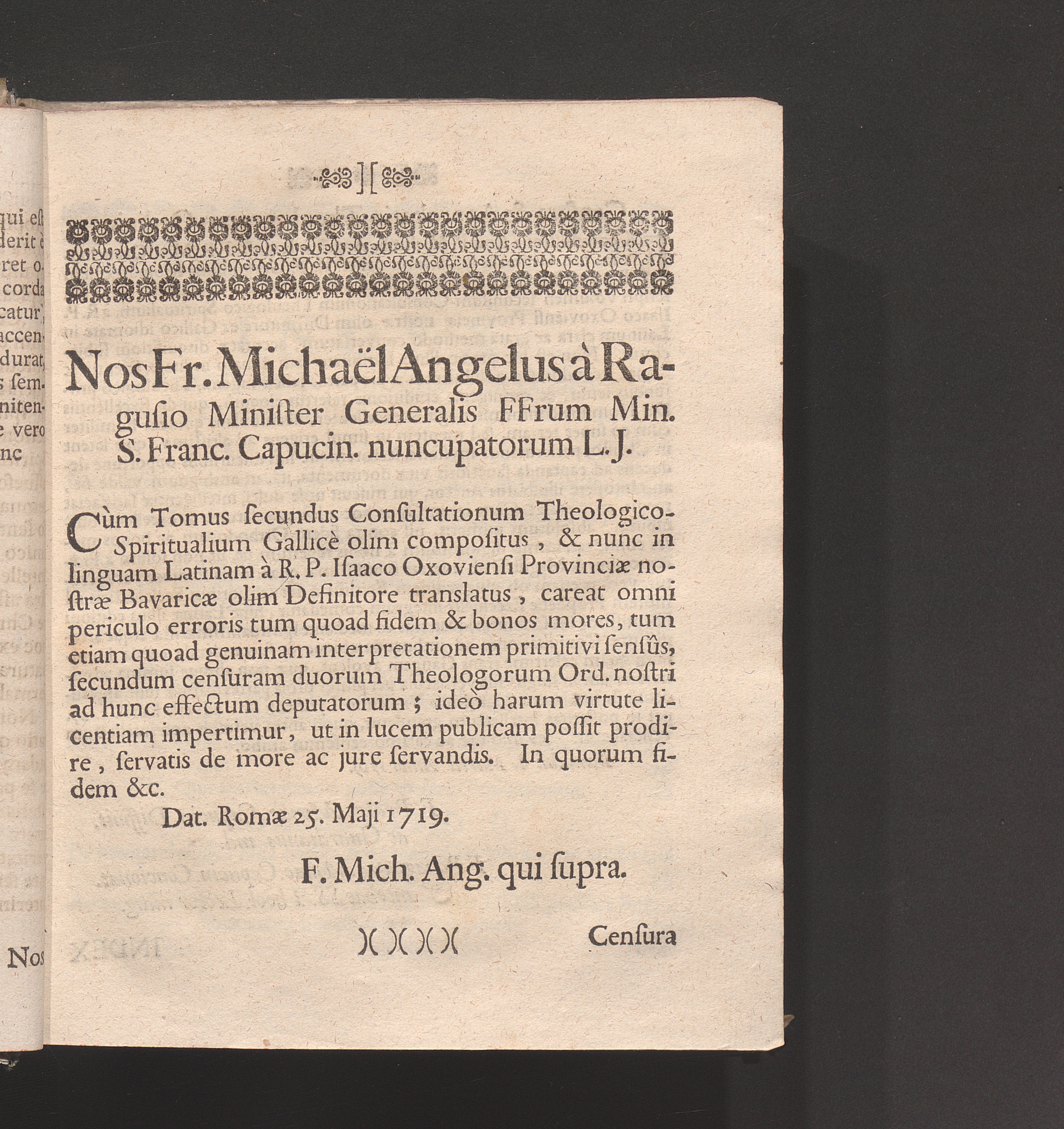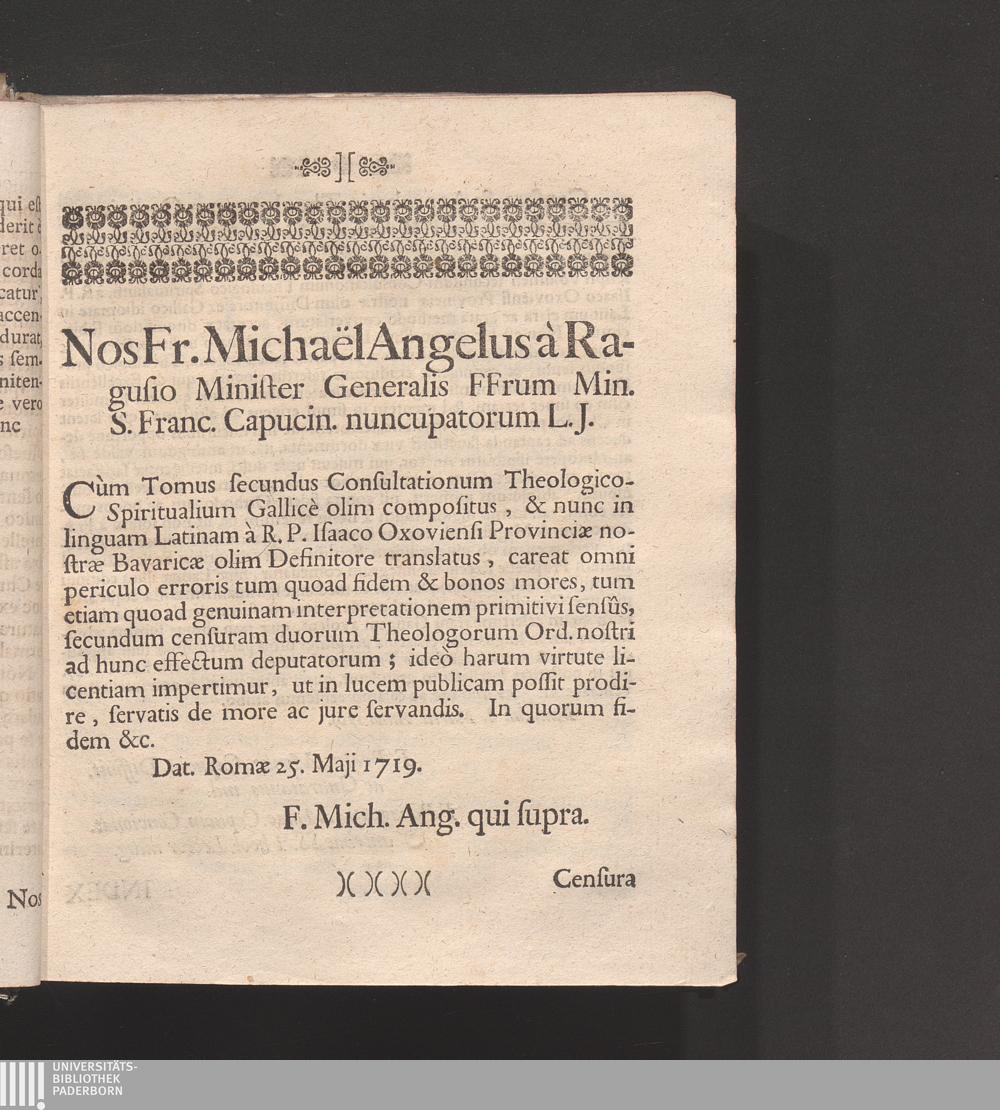 Nos Fr. Michaël Angelus à Ragusio Minister Generalis FFrum Min. S. Franc. Capucin.[...]