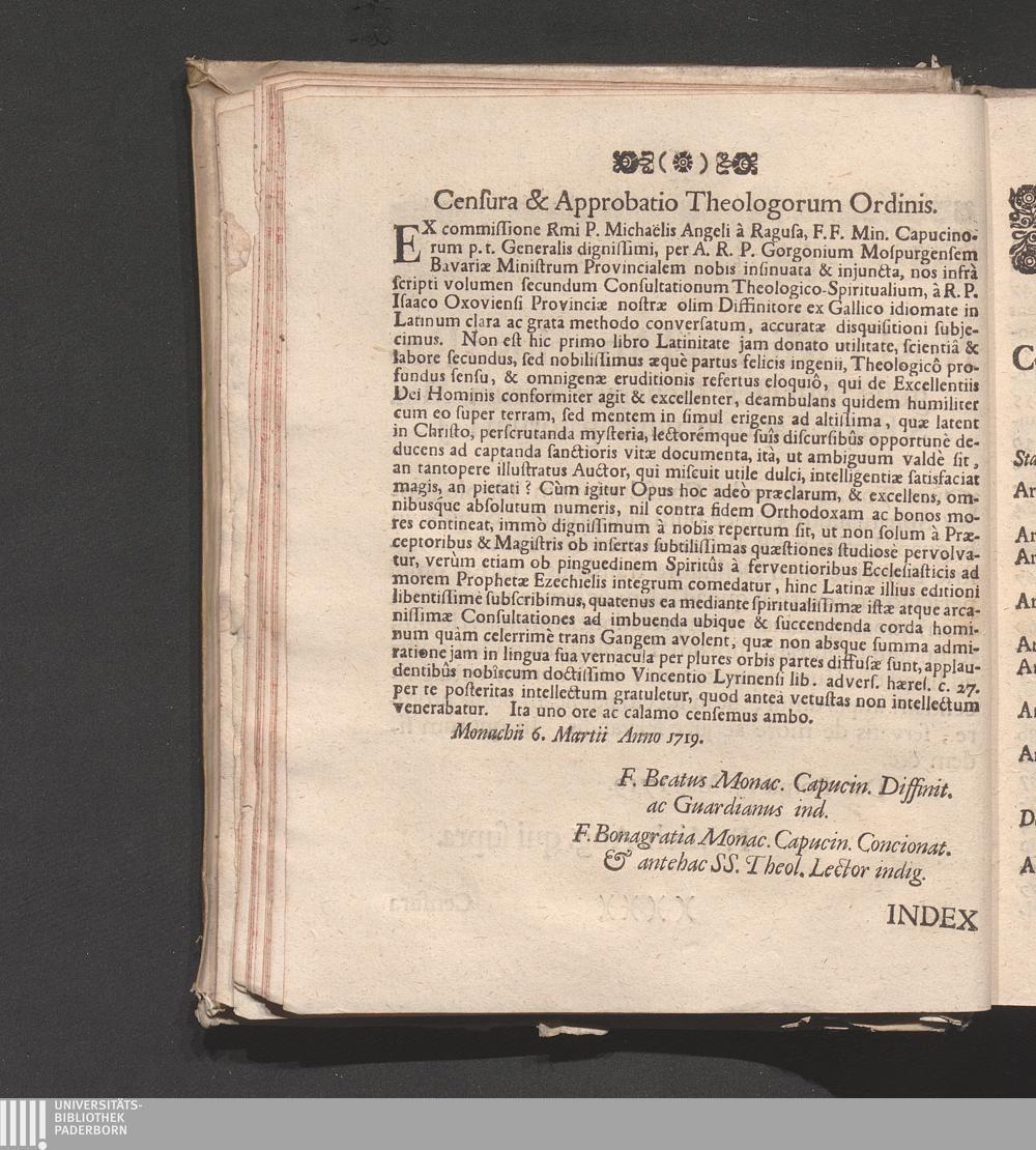 Censura & Approbatio Theologorum Ordinis.