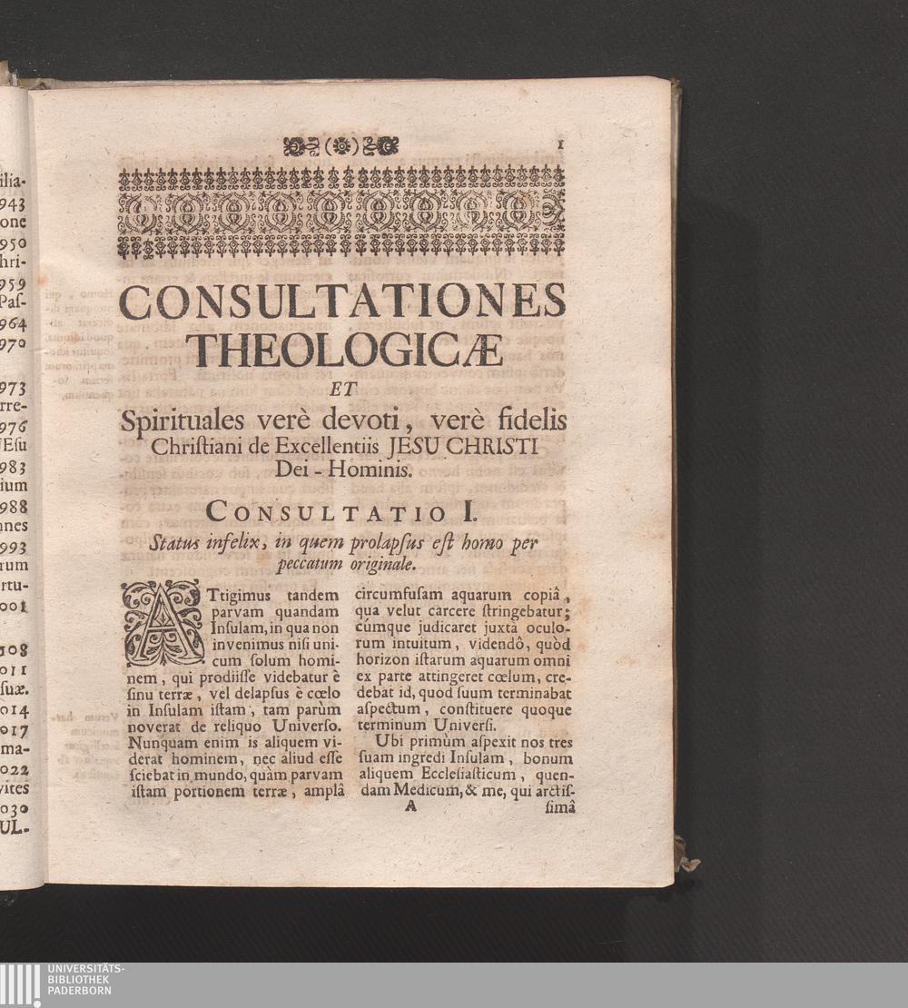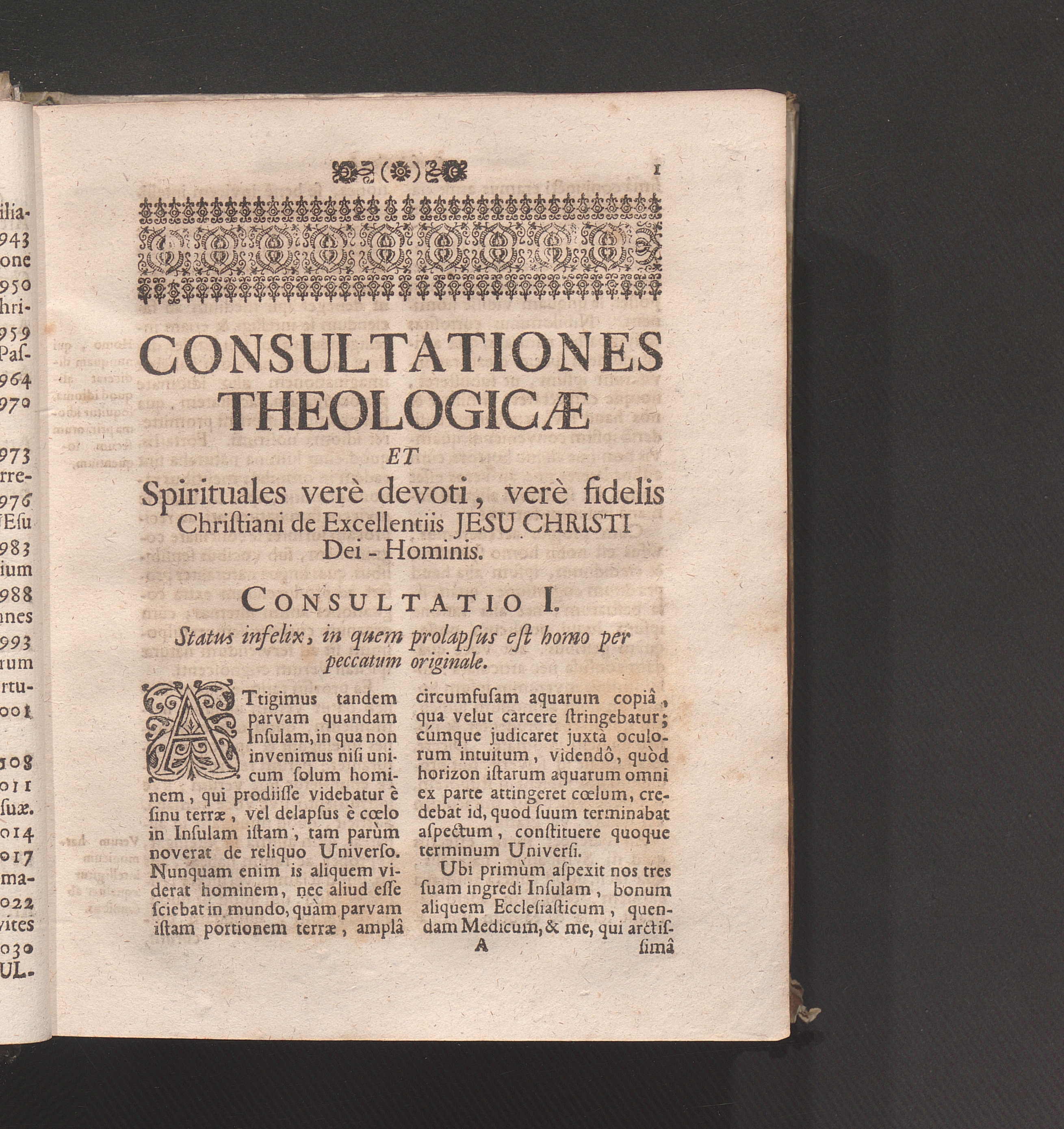 Consultatio I. Status infelix, in quem prolapsus est homo per peccatum Originale[...]