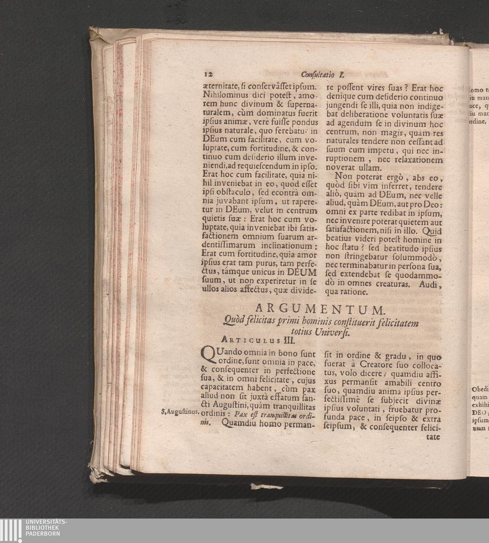 Artic. III. Quòd felicitas primi hominis constituerit felicitatem totius Univers[...]
