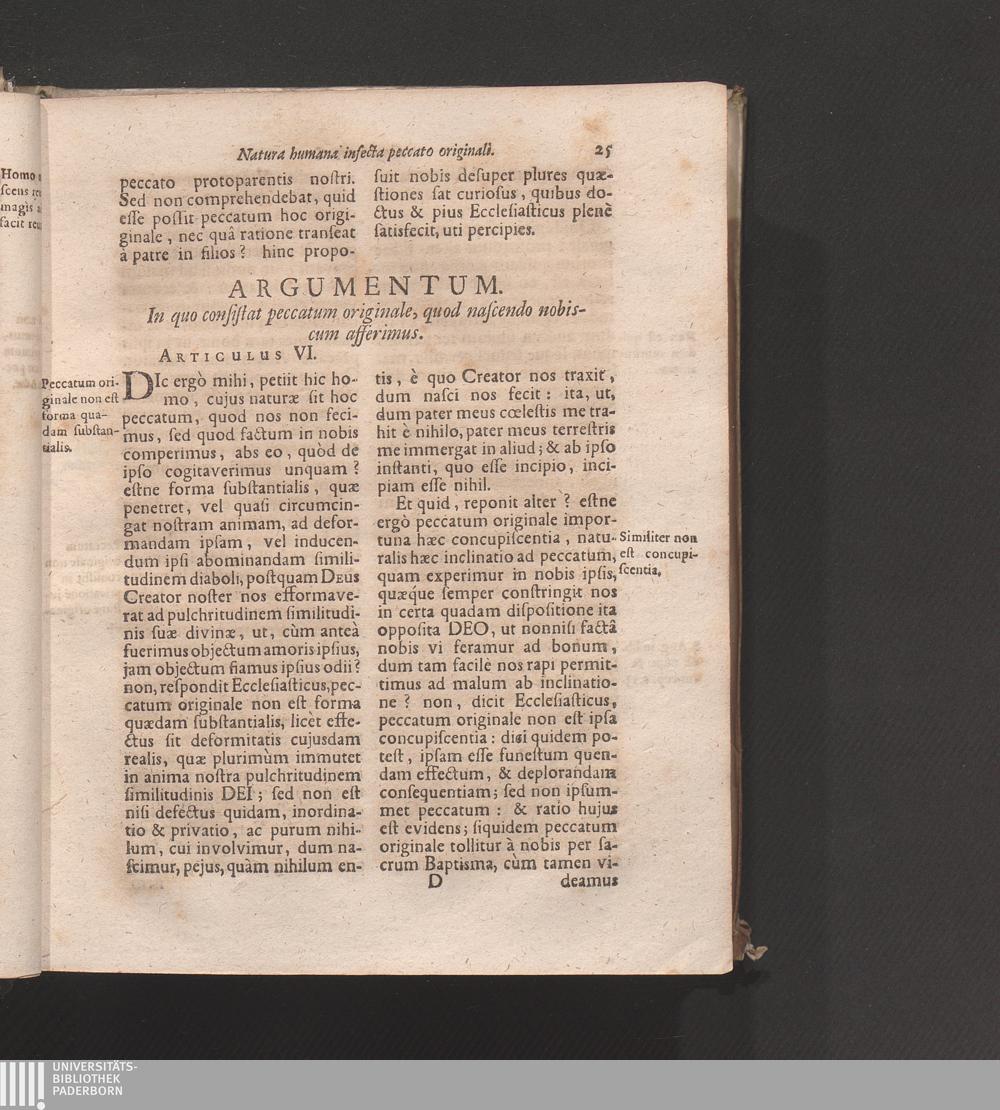 Artic. VI. In quo consistat peccatum originale, quod nascendo nobiscum afferimus[...]