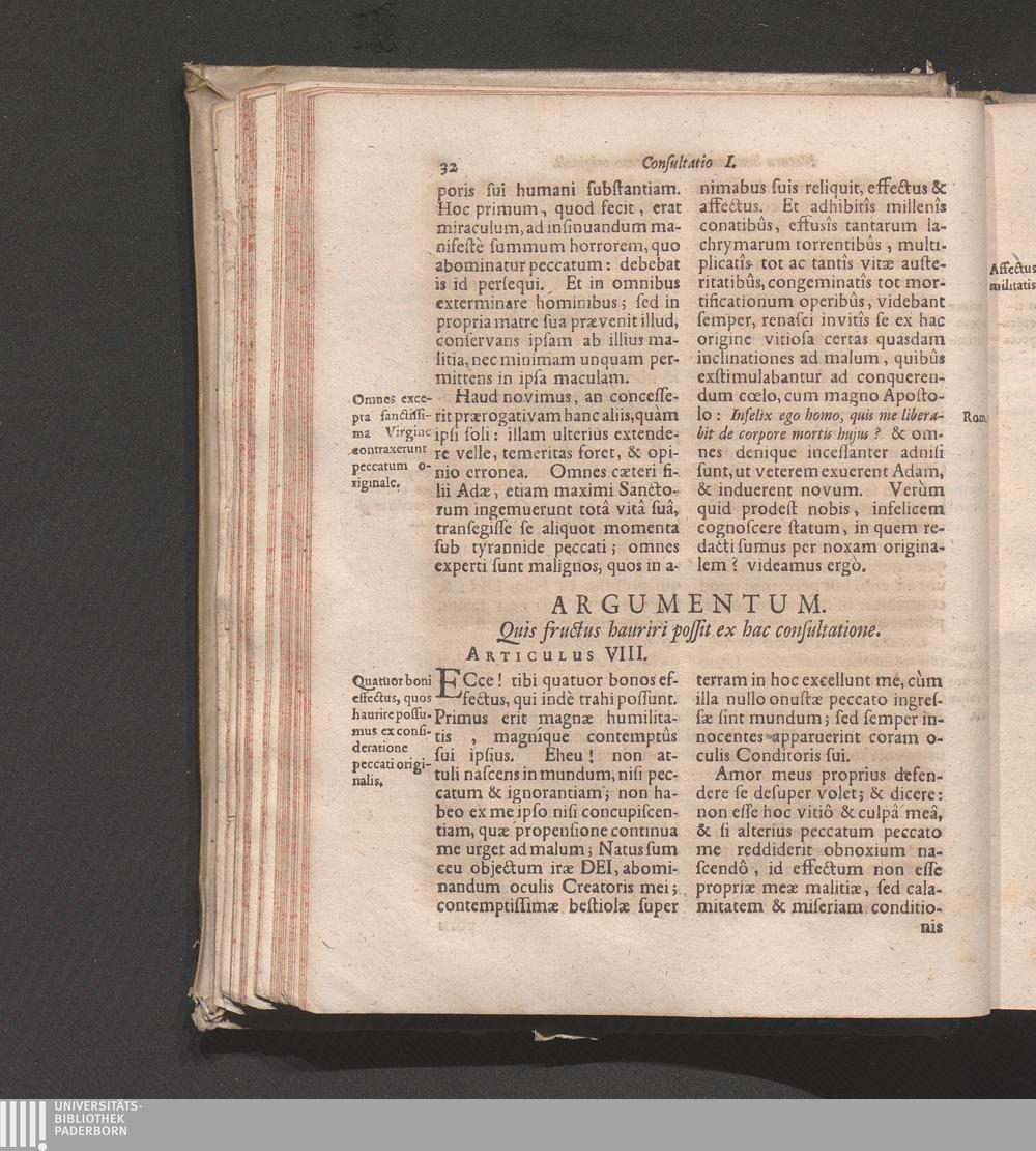 Consultatio I. Status infelix, in quem prolapsus est homo per peccatum Originale[...]