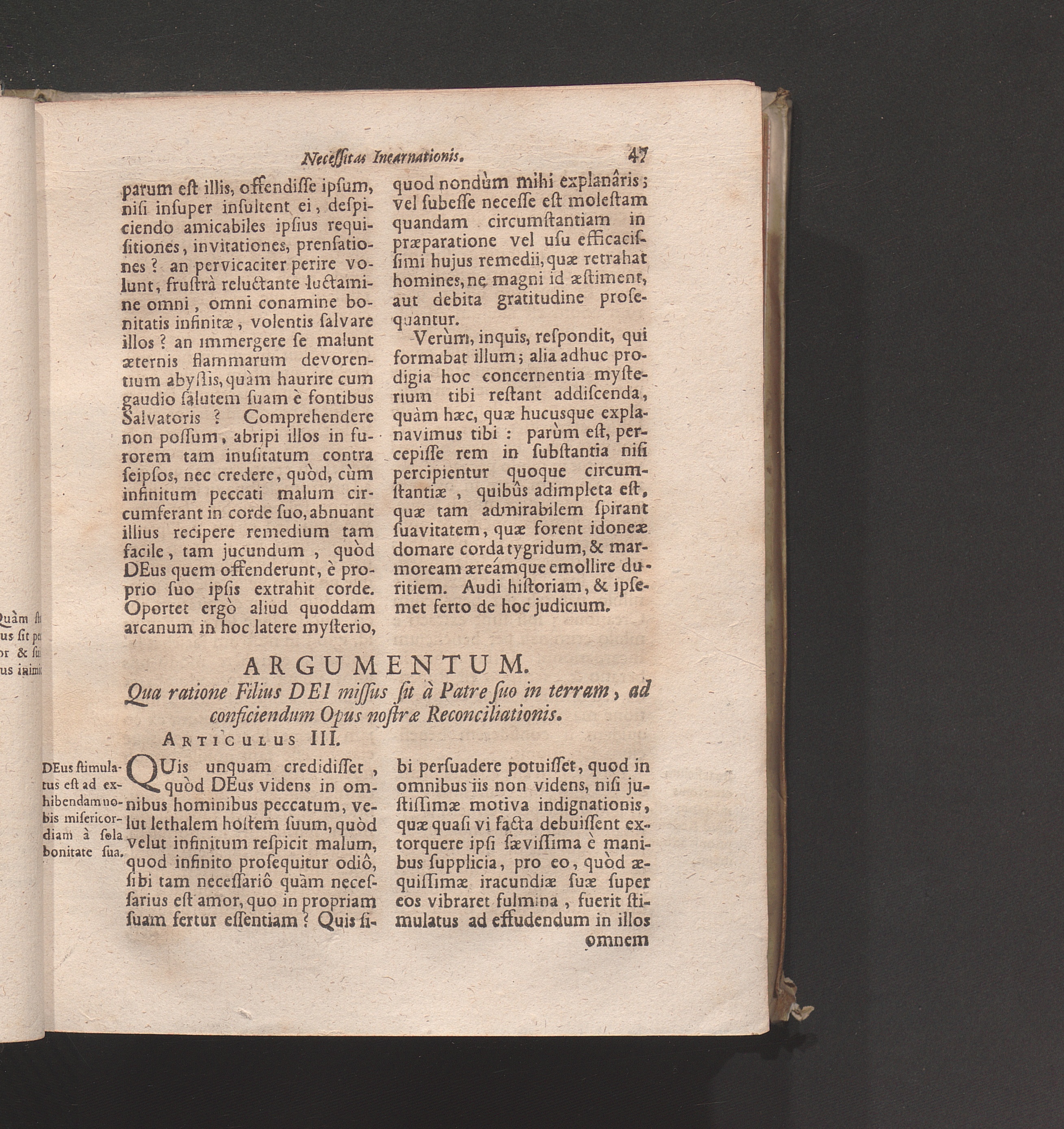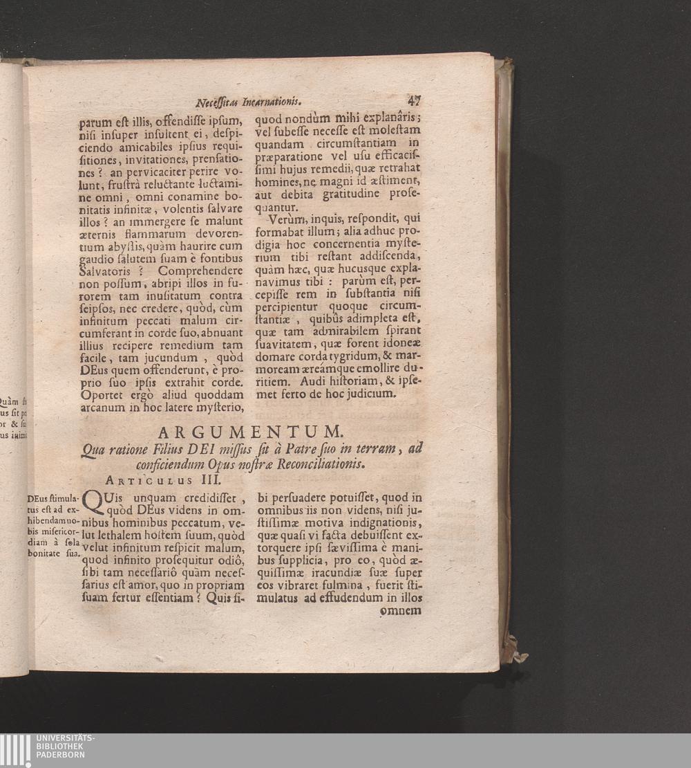 Artic. III. Qua ratione Filius Dei missus sit à Patre suo in terram, ad conficiendum[...]
