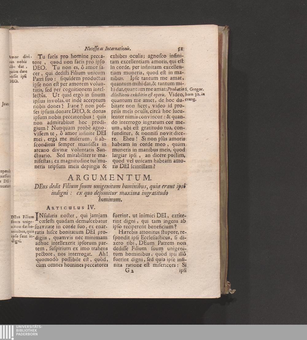 Artic. IV. Deus dedit Filium suum unigenitum hominibus, quia erant ipso indigni:[...]