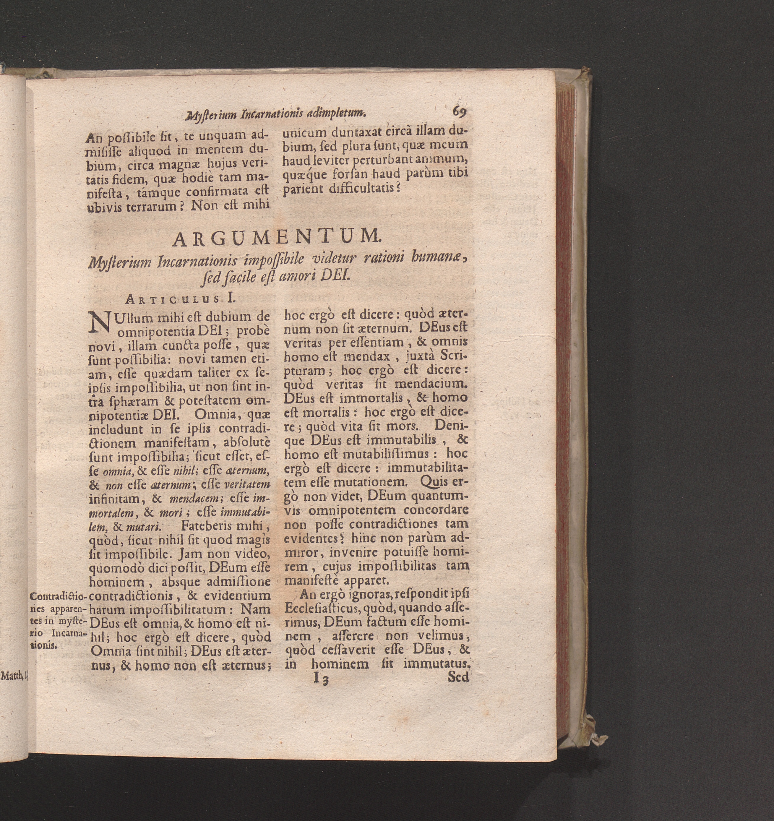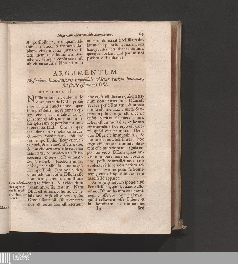 Artic. I. Mysterium Incarnationis impossibile videtur rationi humanæ, sed facile[...]