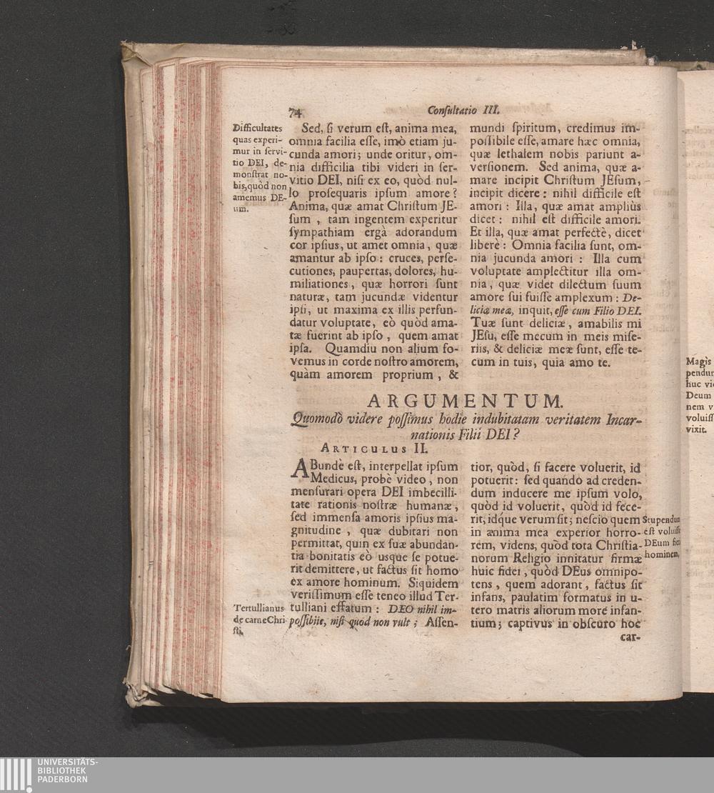 Consultatio III. Certitudo, quam habemus de veritate mysterii Incarnationis.