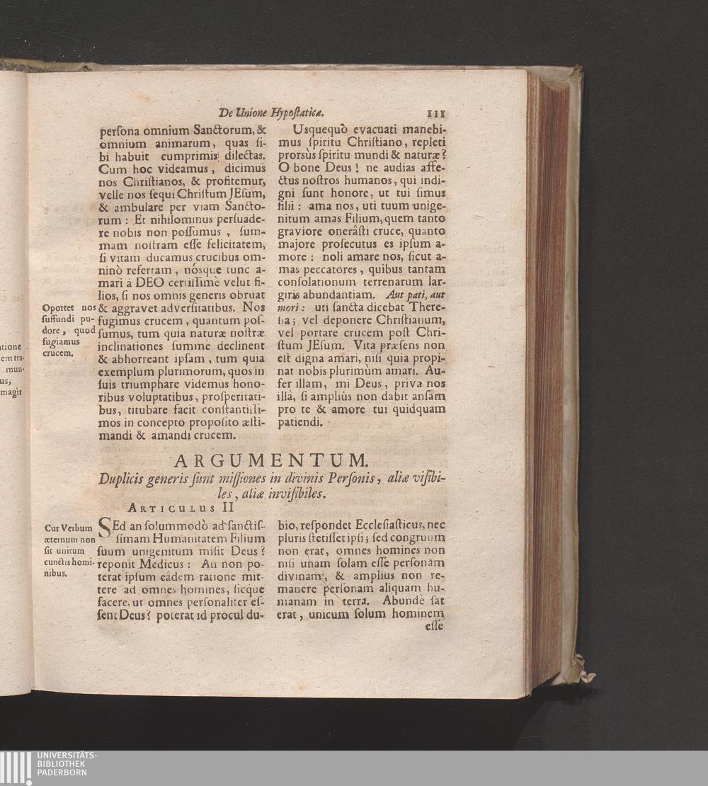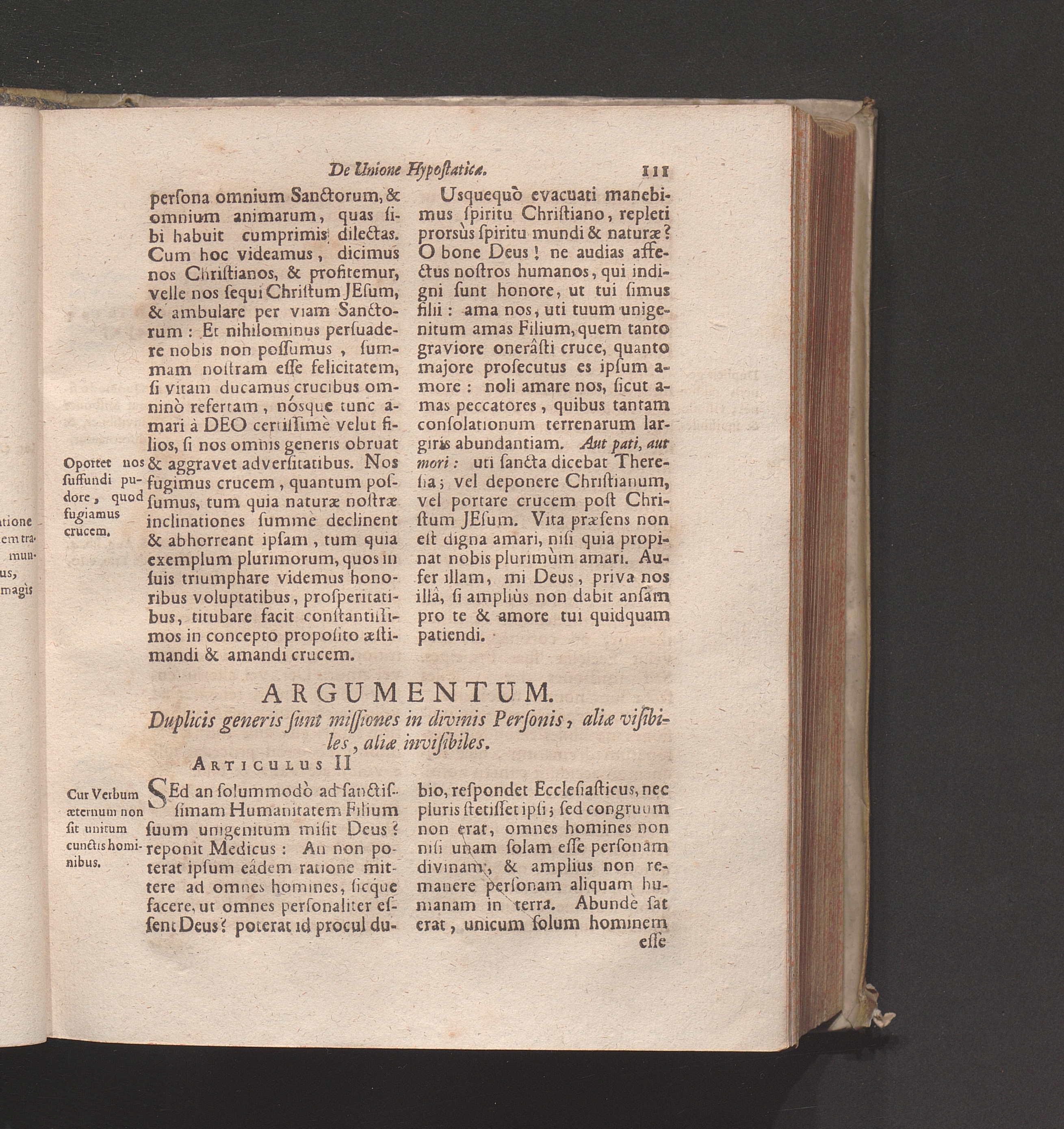 Art. II. Duplicis generis sunt missiones in divinis Personis, aliæ visibiles, aliæ[...]