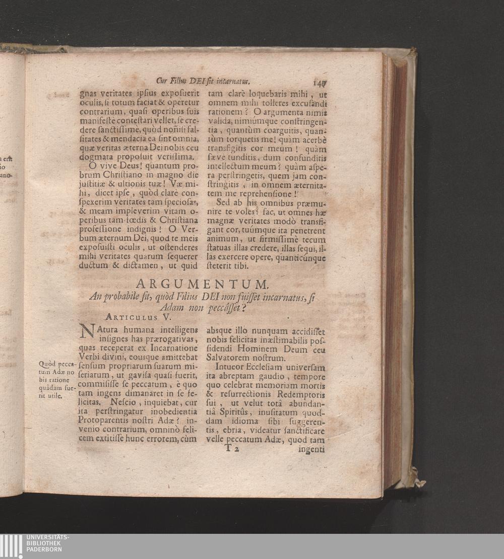 Art. V. An probabile sit, quòd Filius Dei non fuisset incarnatus, si Adam non pe[...]