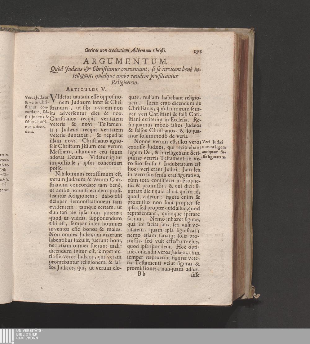 Art. V. Quòd Judæus & Christianus conveniant, si se invicem benè intelligant, quodq[ue][...]