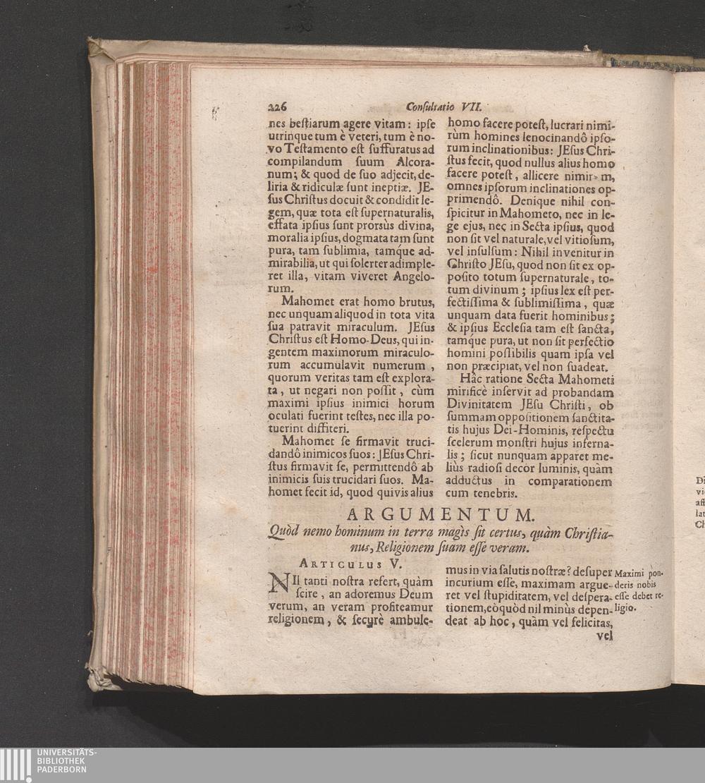 Art. V. Quòd nemo hominum in terra magìs sit certus, quàm Christianus, Religionem[...]