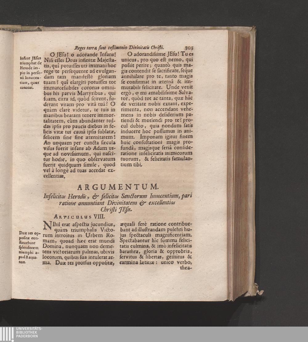 Art. VIII. Infelicitas Herodis, & felicitas Sanctorum innocentium, pari ratione annuntiant[...]