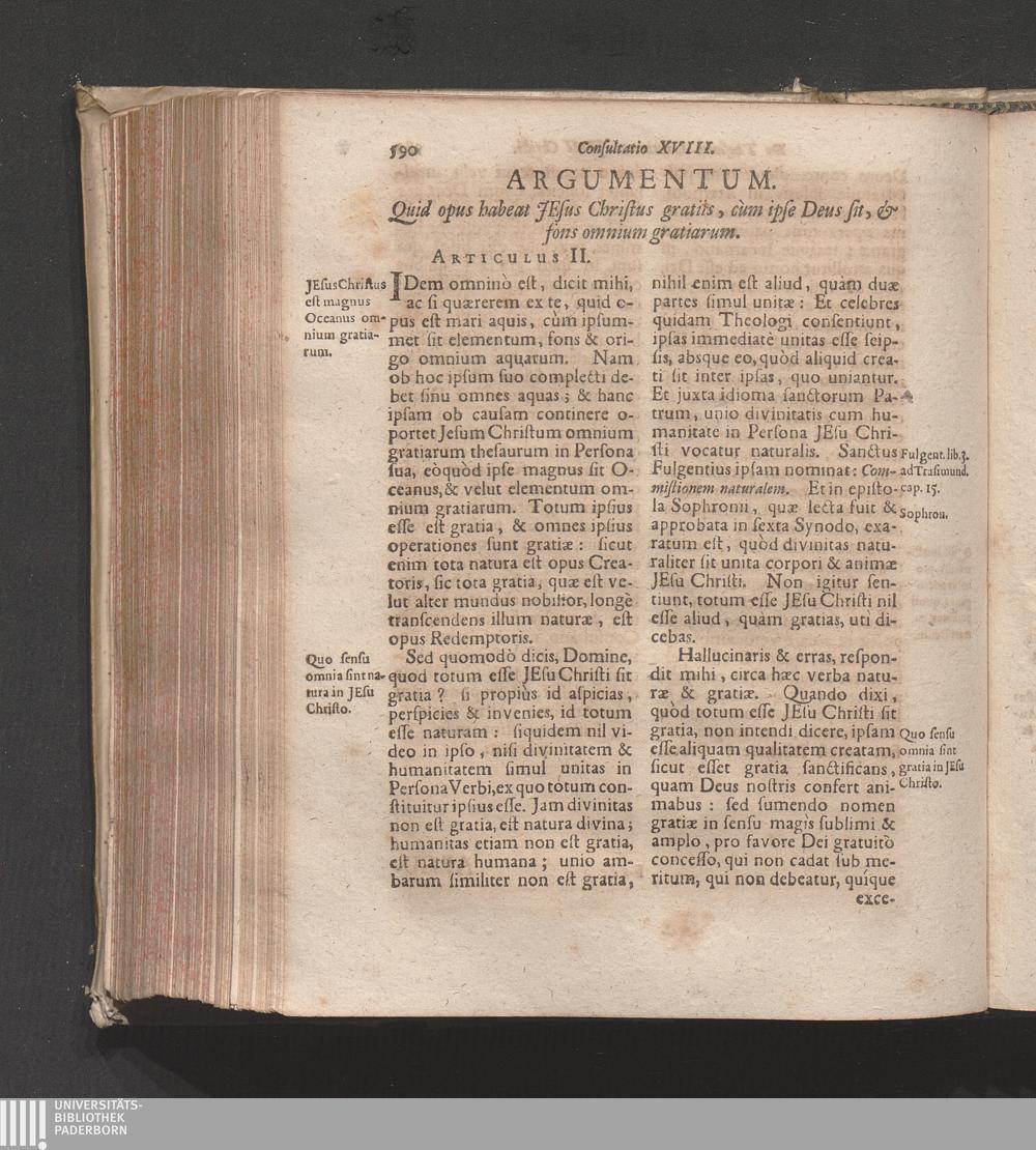Consultatio XVIII. Thesaurus inexhaustus omnium gratiarum inclusus in Persona Christi[...]