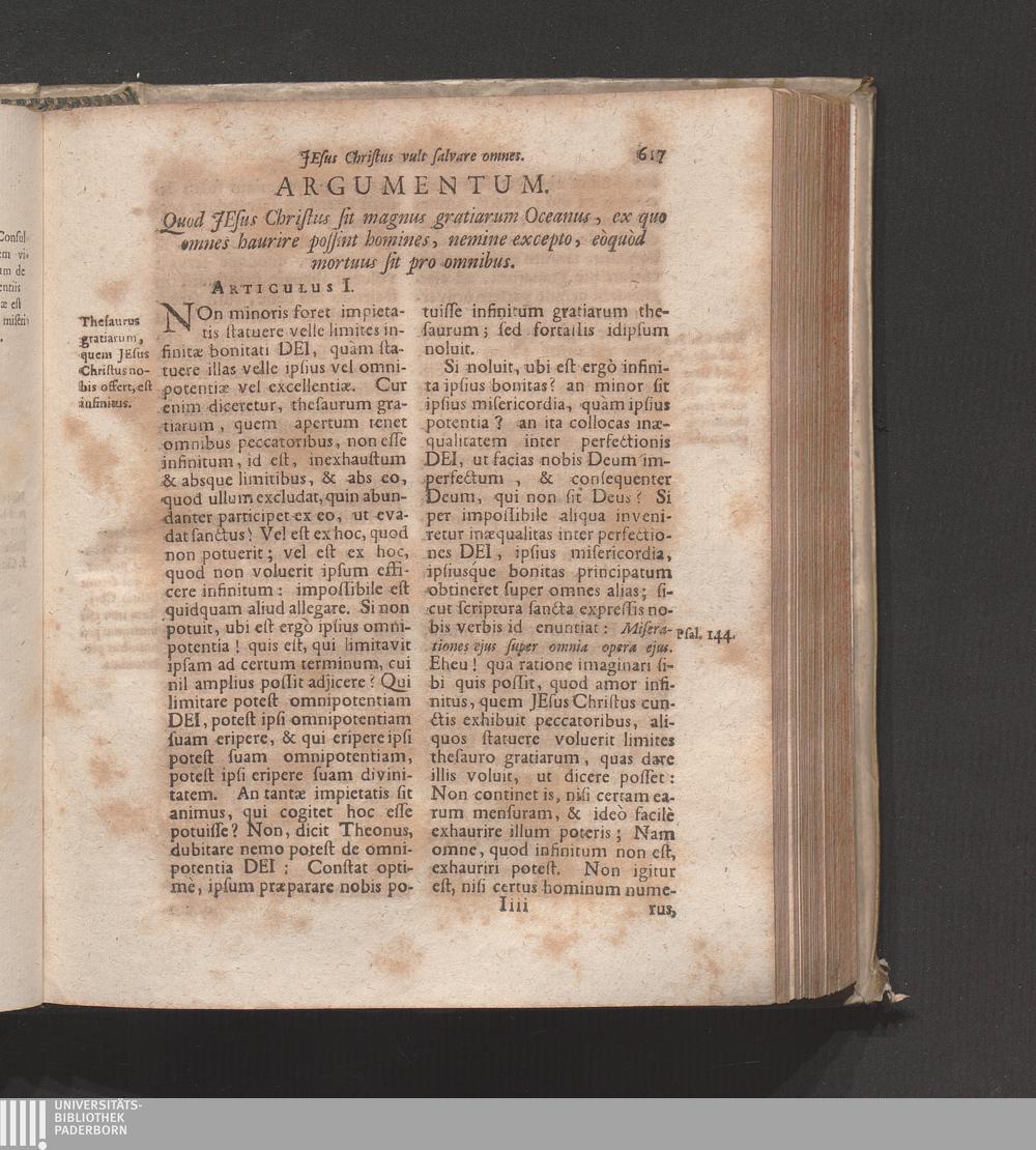 Artic. I. Quòd Jesus Christus sit magnus gratiarum Oceanus, ex quo omnes haurire[...]