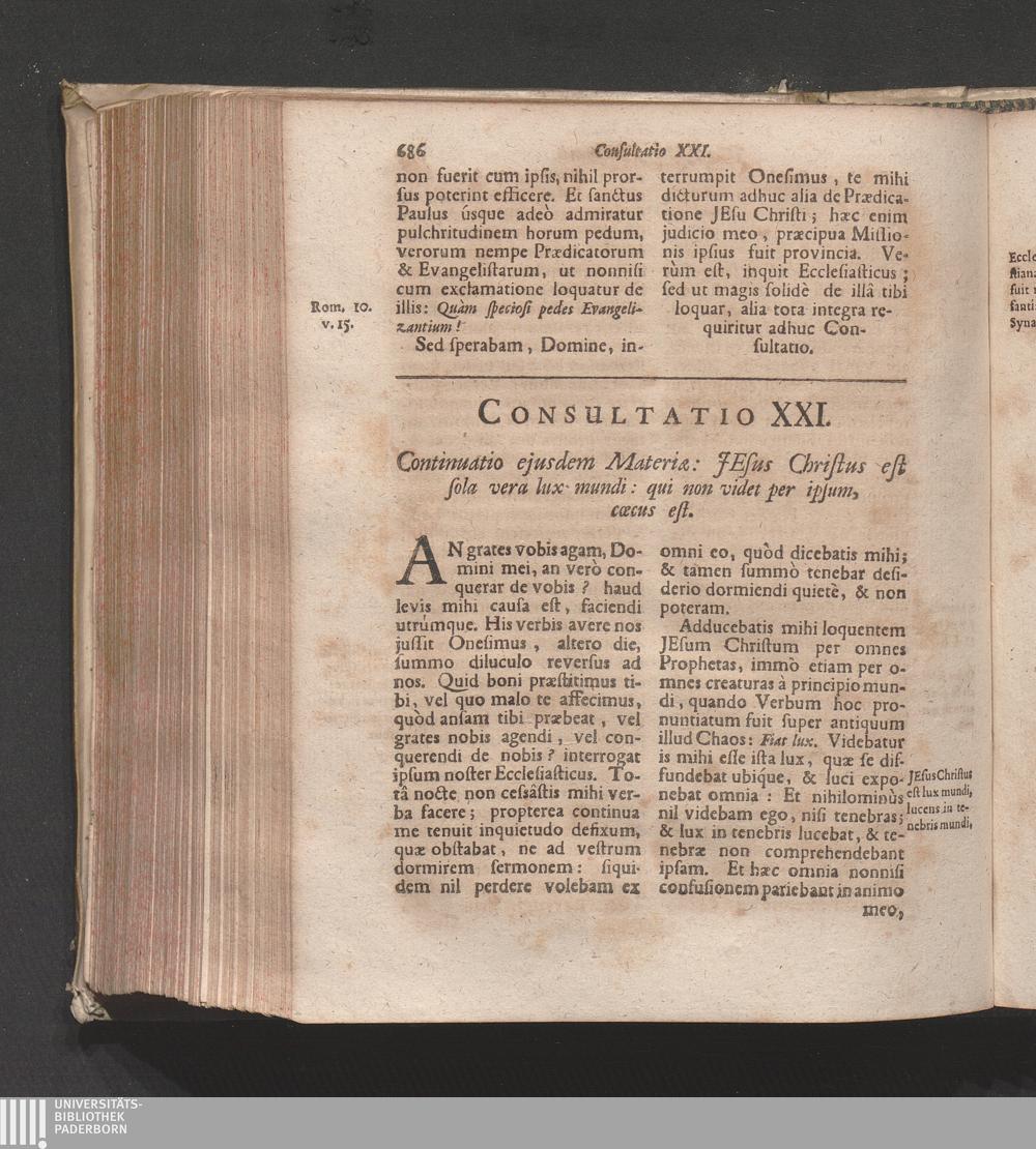 Consultatio XXI. Continuatio ejusdem materiæ: Jesus Christus est sola vera lux mundi;[...]