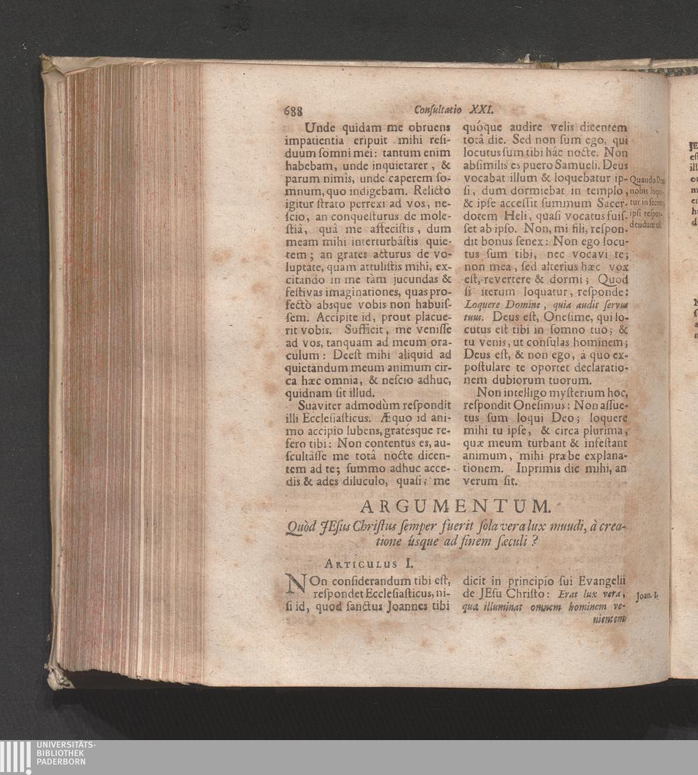 Consultatio XXI. Continuatio ejusdem materiæ: Jesus Christus est sola vera lux mundi;[...]