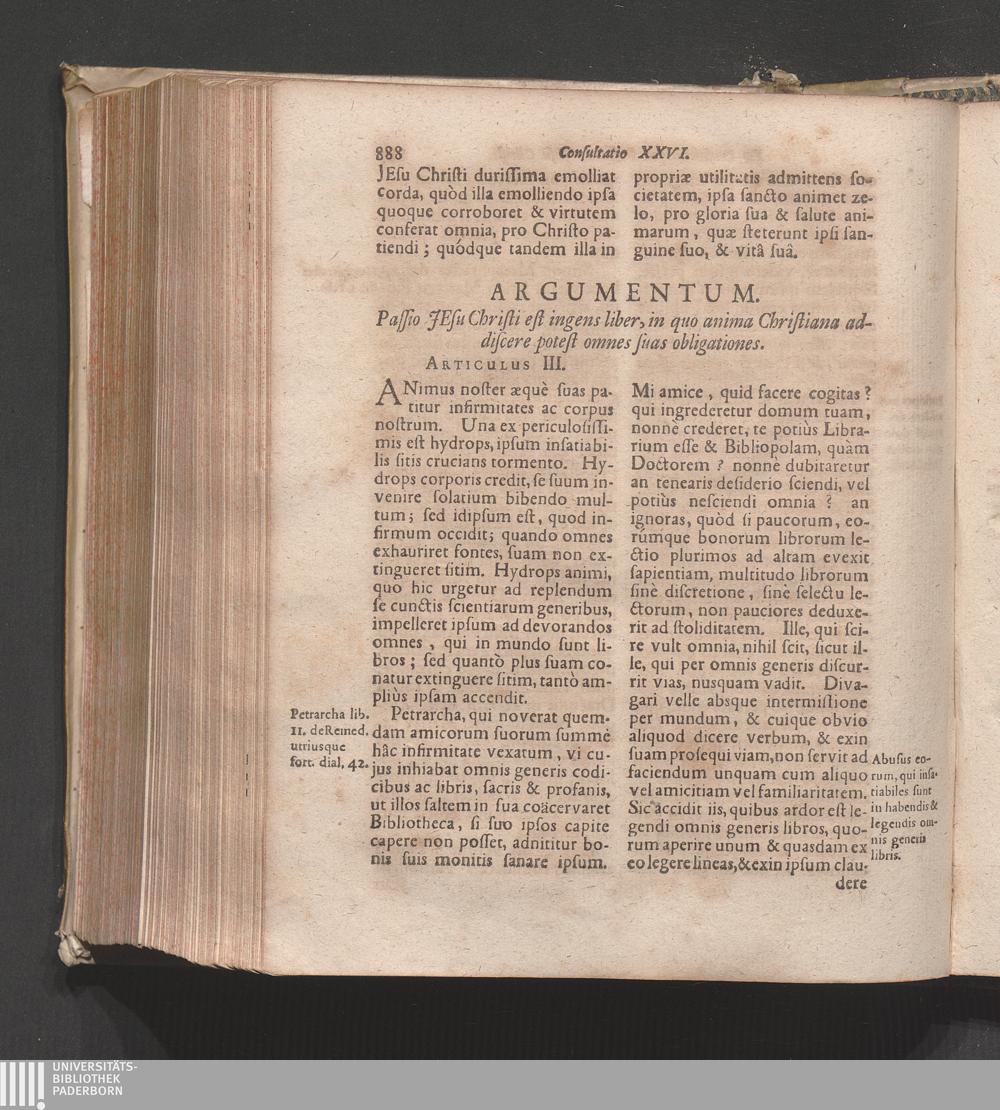 Consultatio XXVI. Christianus omnem suam collocare debet consolationem in meditatione[...]