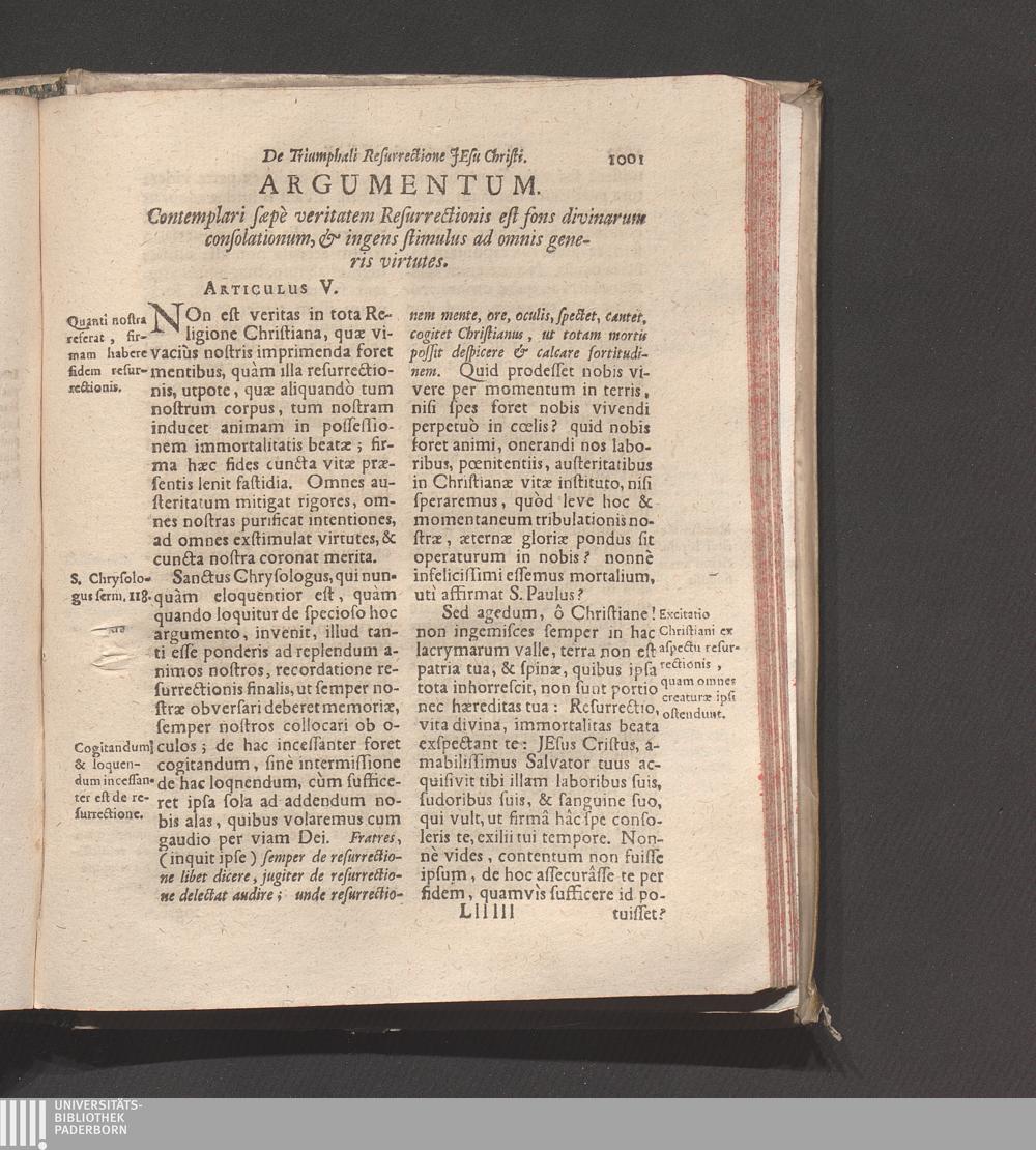 Art. V. Contemplari sæpè veritatem Resurrectionis est fons divinarum consolationum,[...]