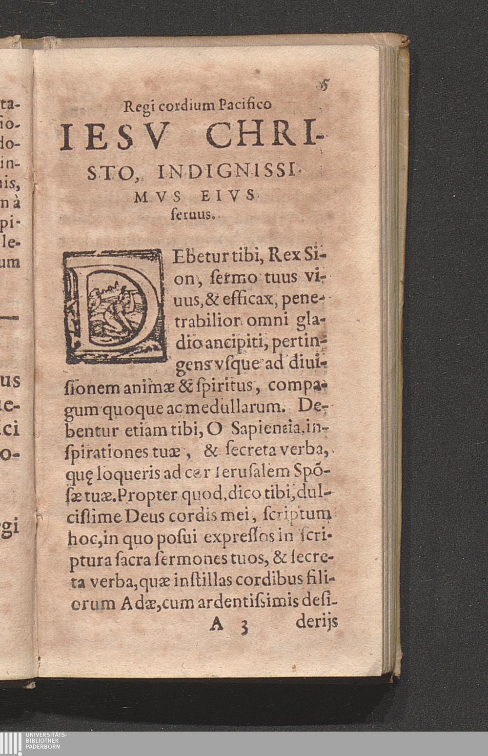 Regi cordium Pacifico Iesv Christo, Indignissmvs Eivs seruus.