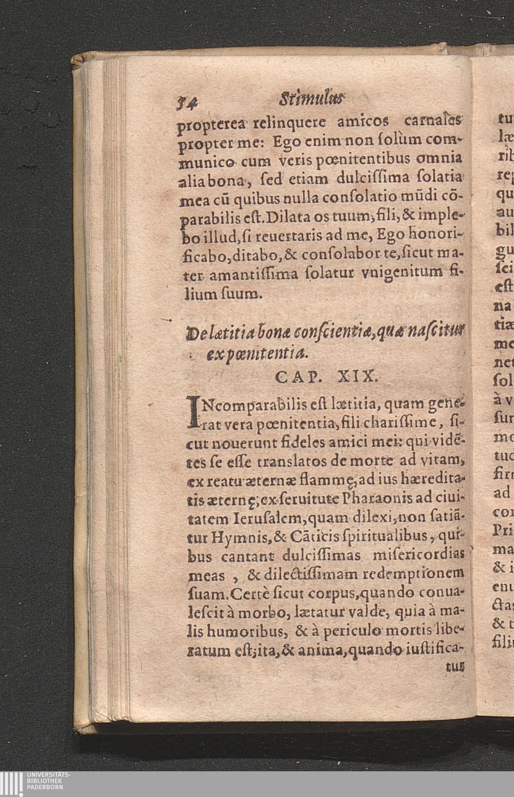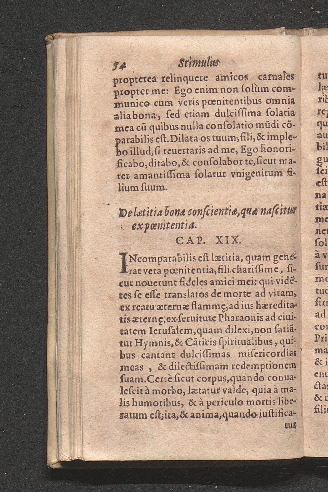 De lætitia bonæ conscientiæ, quæ nascitur ex pœnitentia. Cap. 19.