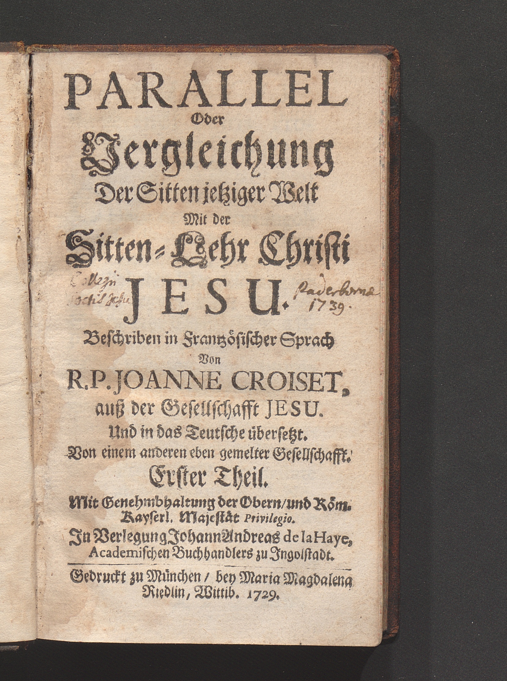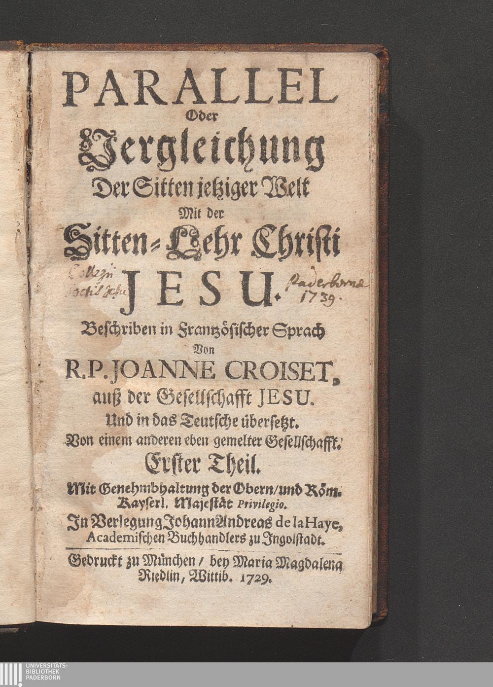 Parallel Oder Vergleichung Der Sitten jetziger Welt Mit der Sitten-Lehr Christi [...]