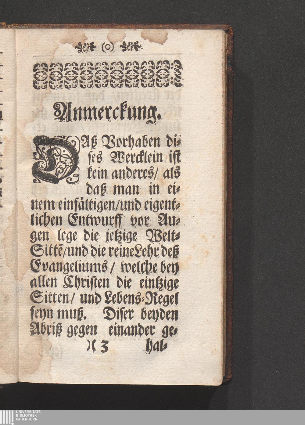 Parallel Oder Vergleichung Der Sitten jetziger Welt Mit der Sitten-Lehr Christi [...]