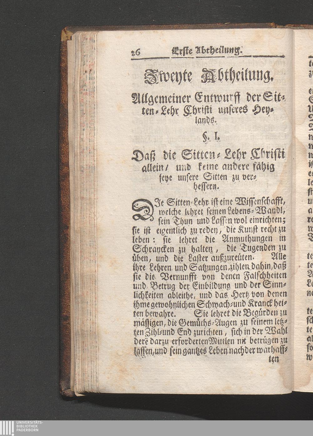 Zweyte Abtheilung. Allgemeiner Entwurff der Sitten-Lehr Christi unsers Erlösers.