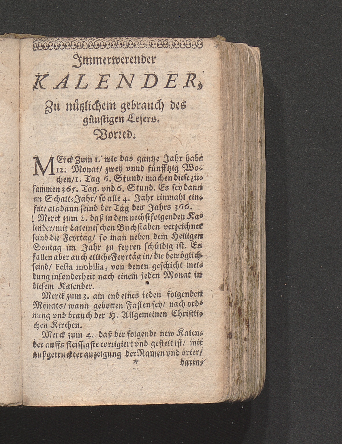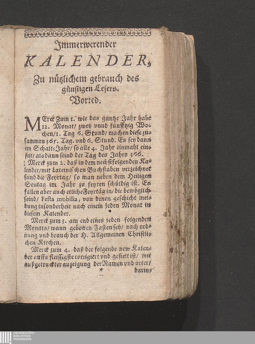 Jmmerwerender Kalender, Zu nützlichem gebrauch des günstigen Lesers.