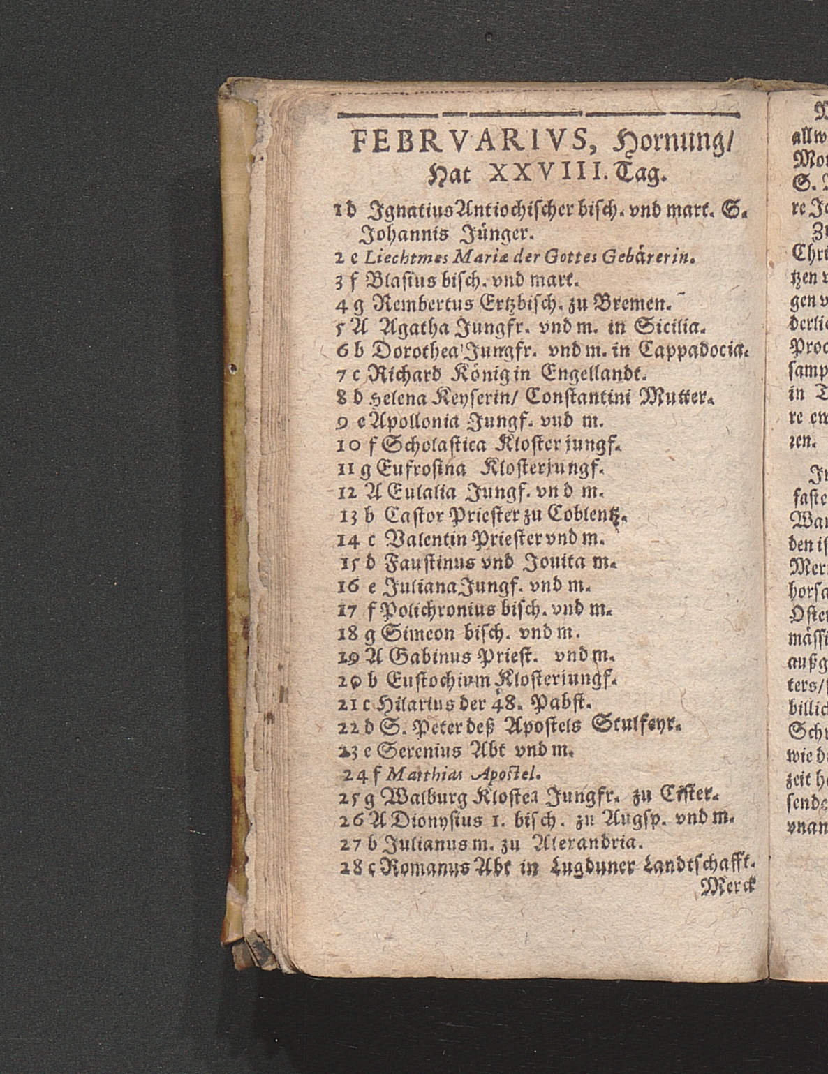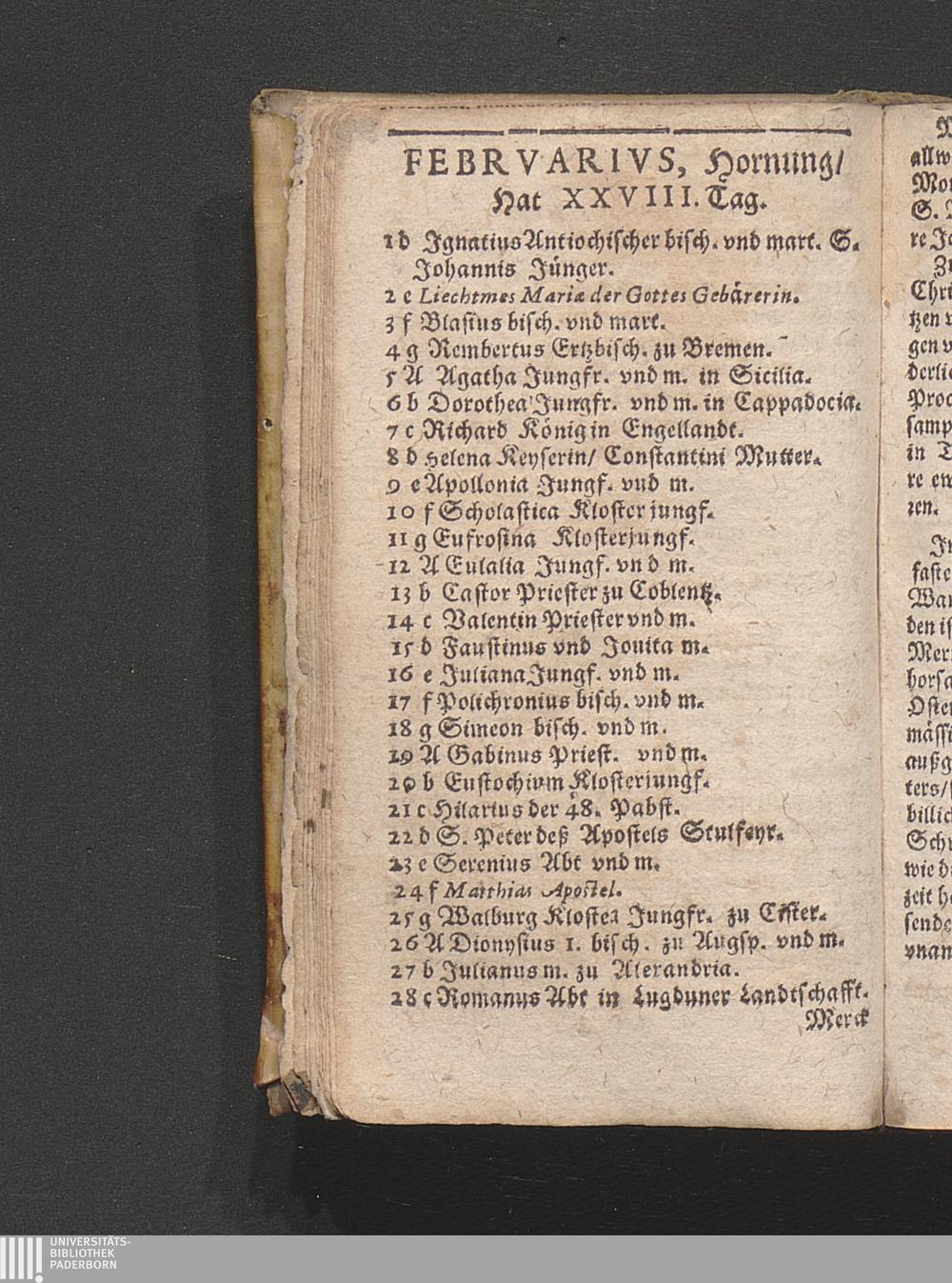 Febrvarivs, Hornung/ Hat XXVIII. Tag.