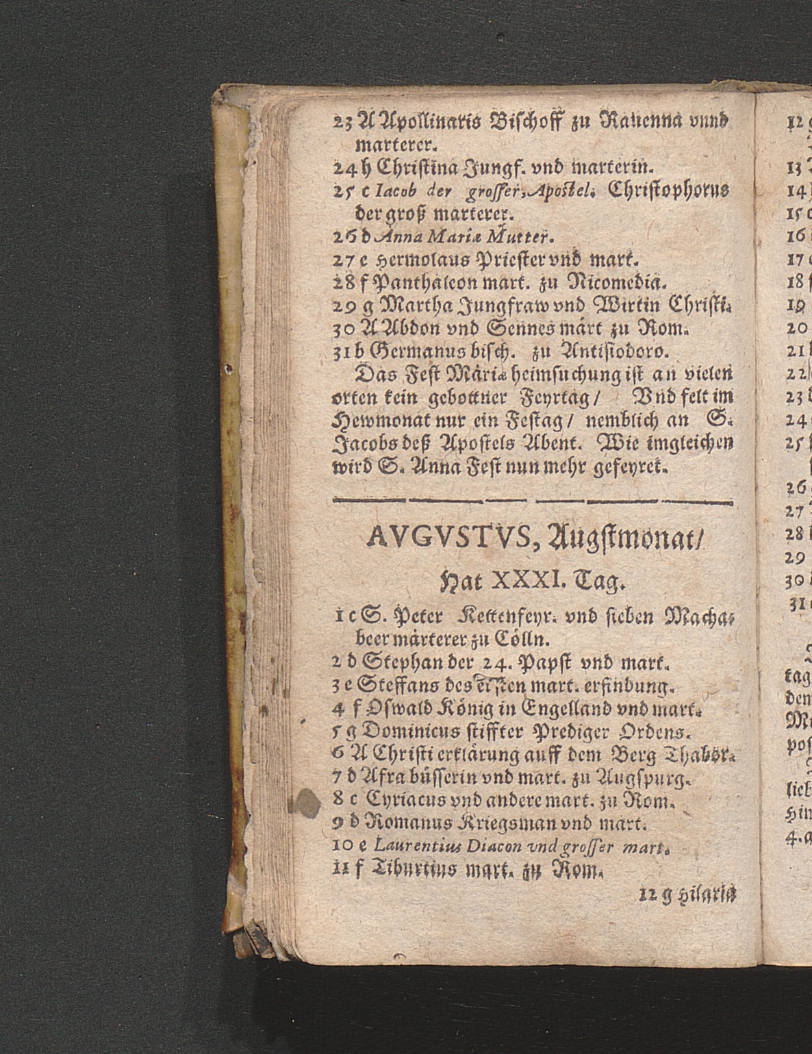 Avgvstvs, Augstmonat/ Hat XXXI. Tag.