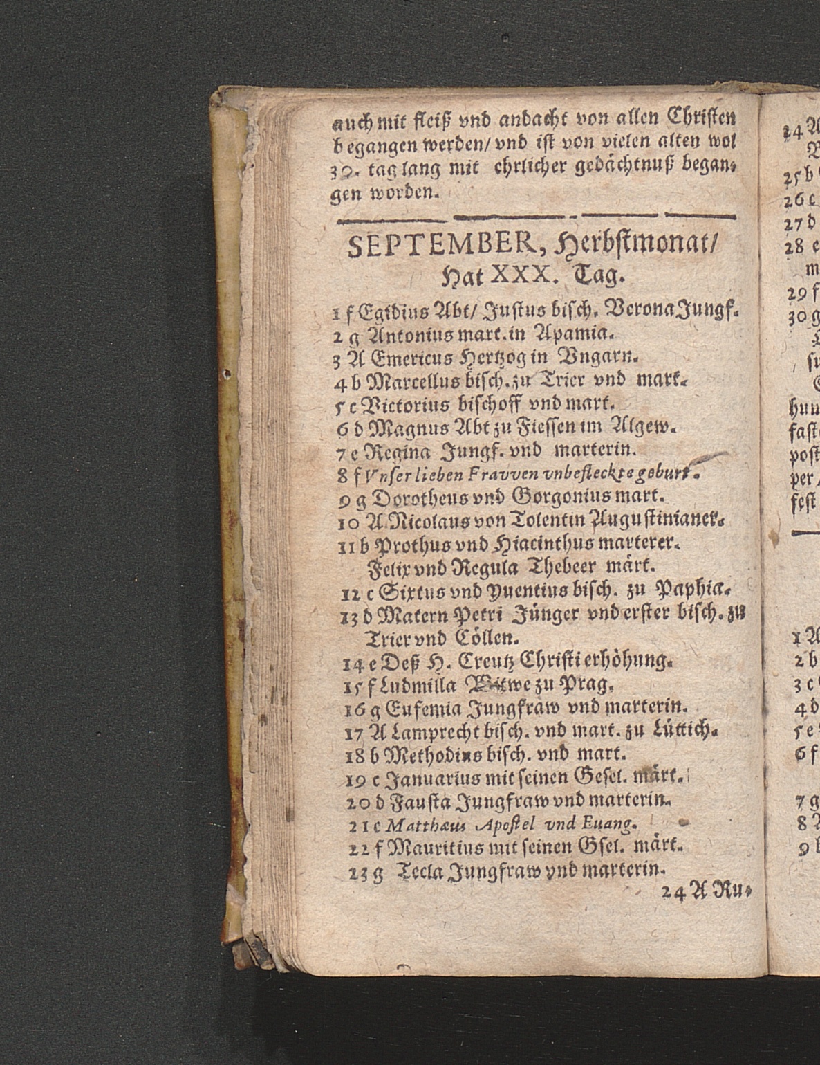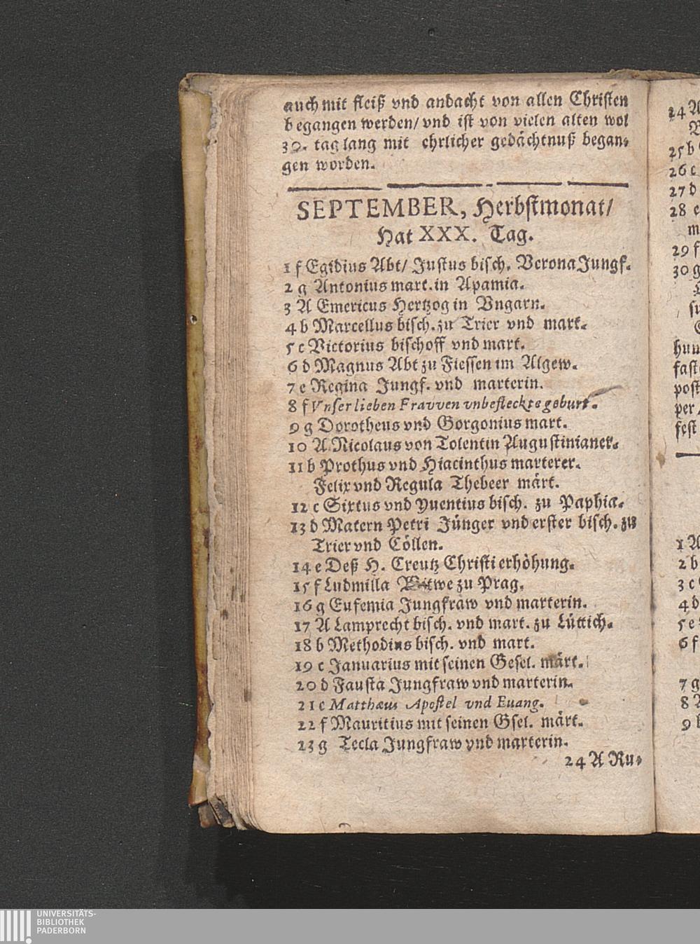 September, Herbstmonat/ Hat XXX. Tag.