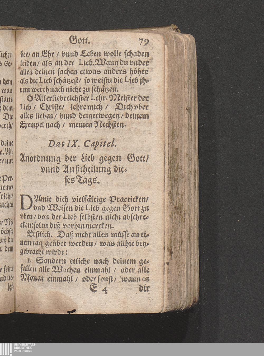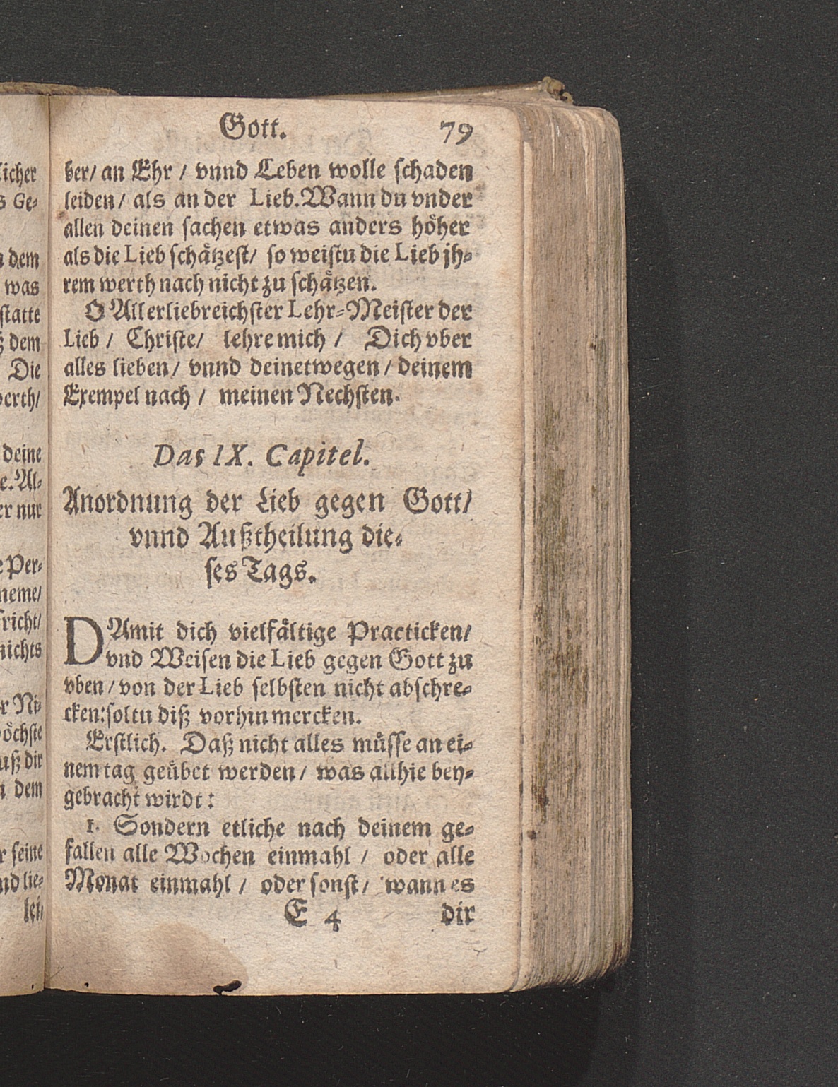 Cap. IX. Anordnung der Lieb gegen Gott vnd außtheilung dieses Tags.