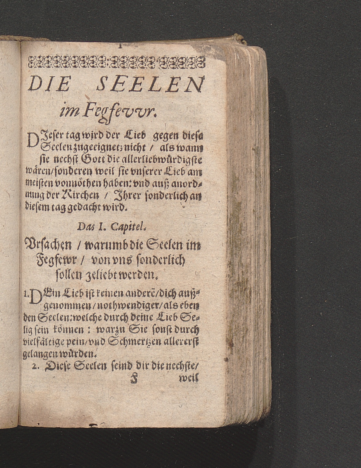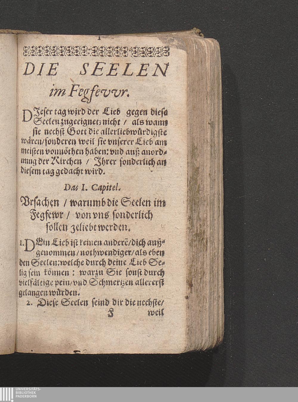 Cap. I. Vrsachen warumb die Seelen im Fegfewr/ von vns sönderlich sollen geliebt[...]