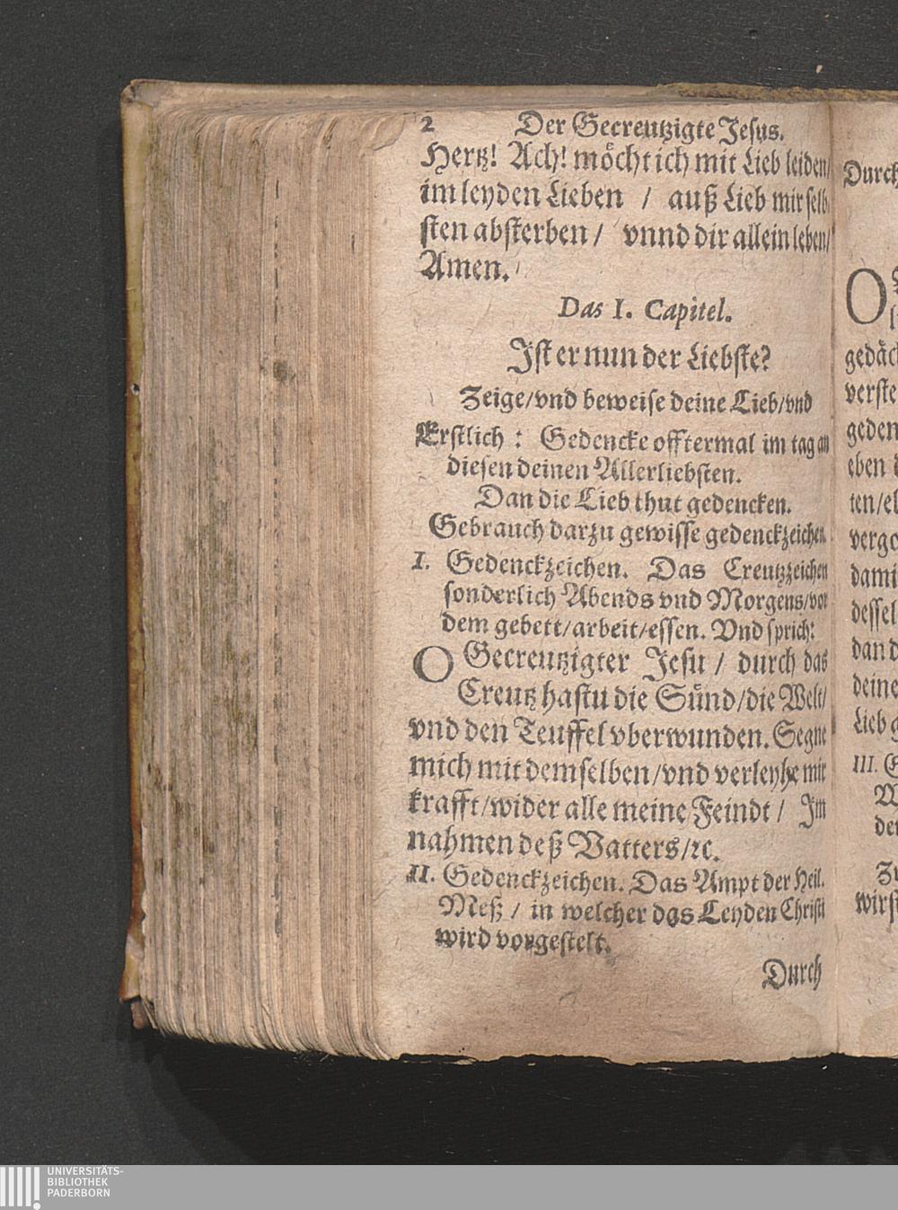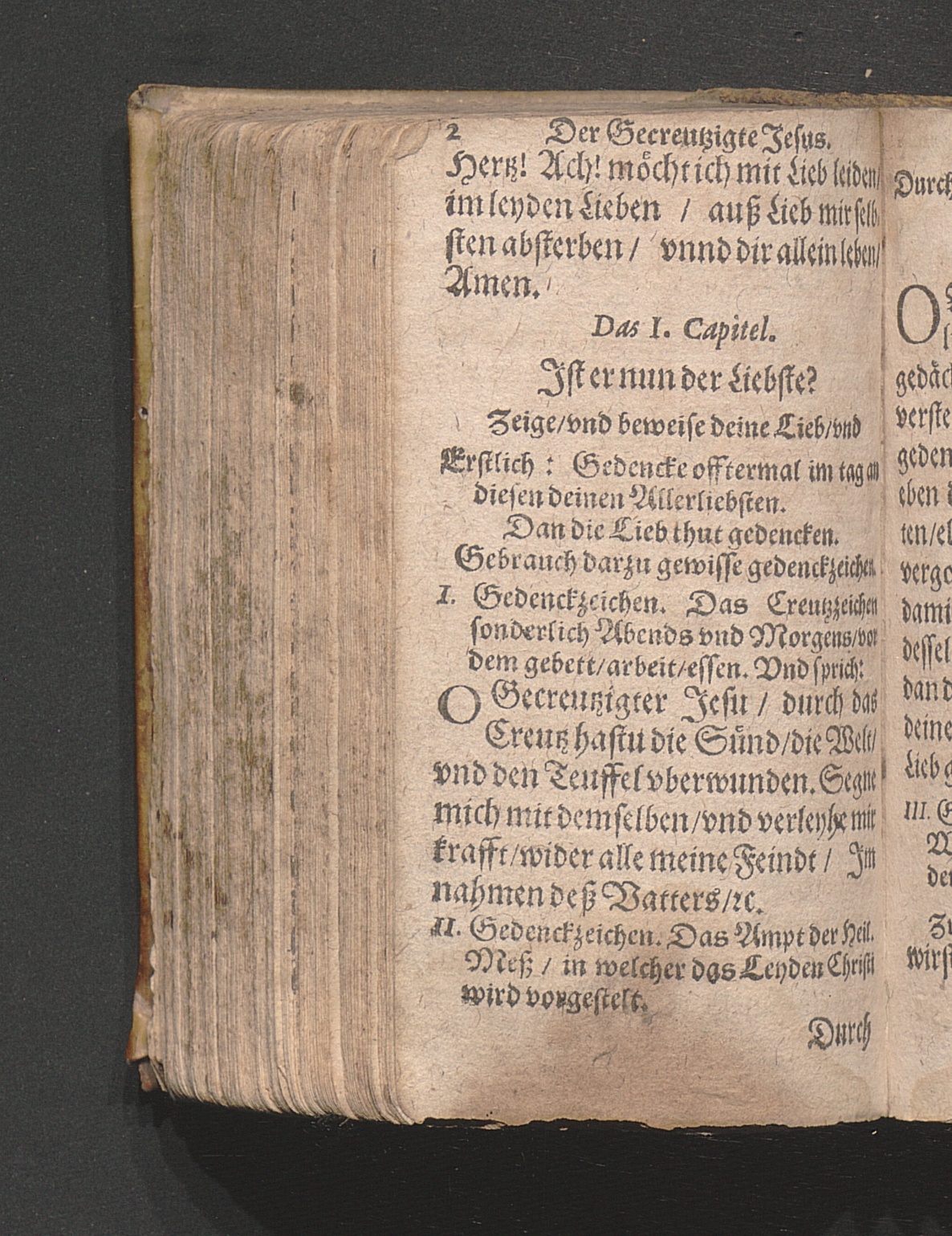 Cap. I. Die erste Prob der Lieb gegen Christum den Gecreutzigten ist; Offt an jhn[...]