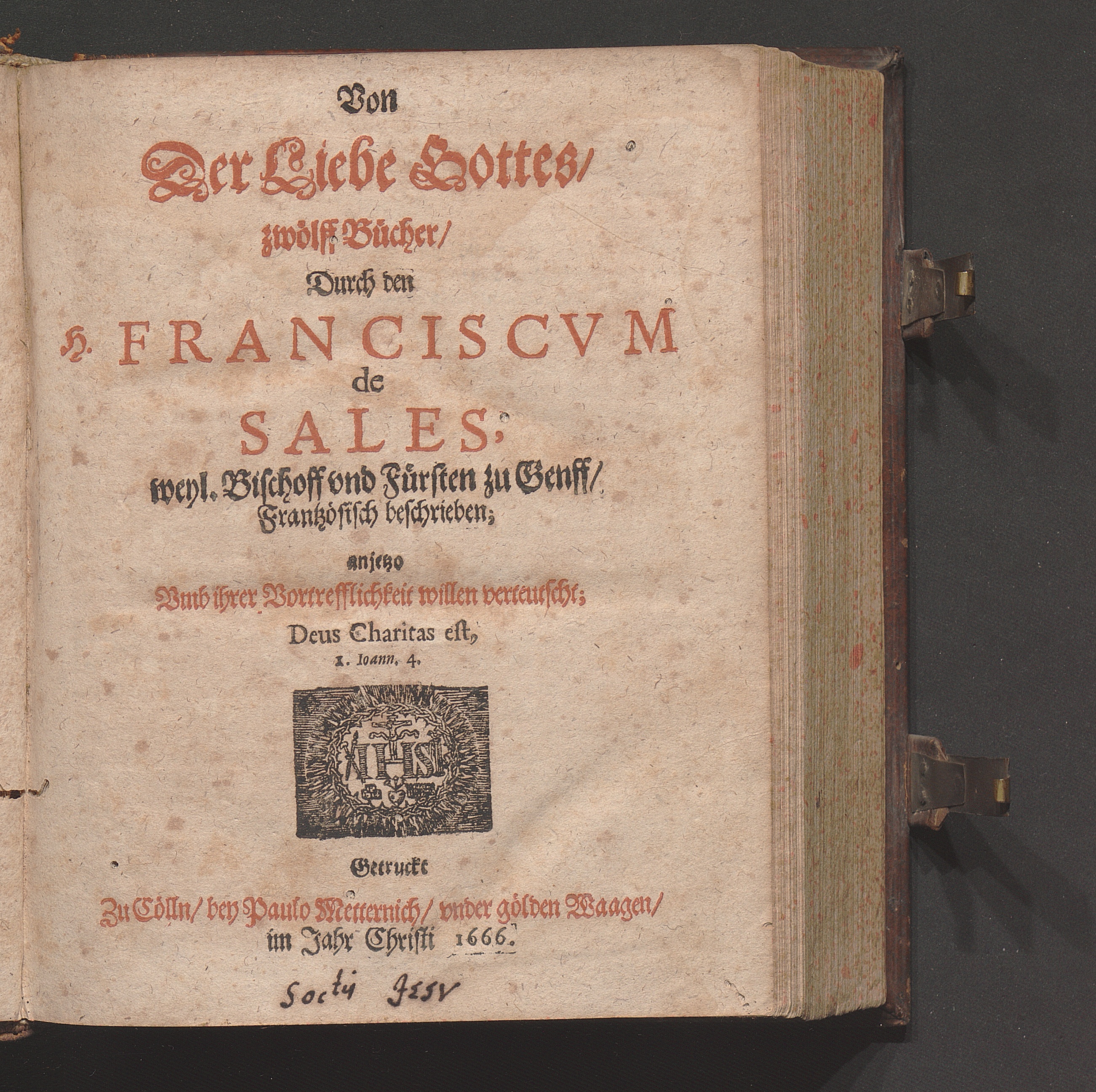 Von Der Liebe Gottes/ zwölff Bücher / Durch den H. Franciscvm de Sales, weyl. Bischoff vnd Fürsten zu Genff/ Frantzösisch beschrieben; anjetzo ... verteutscht