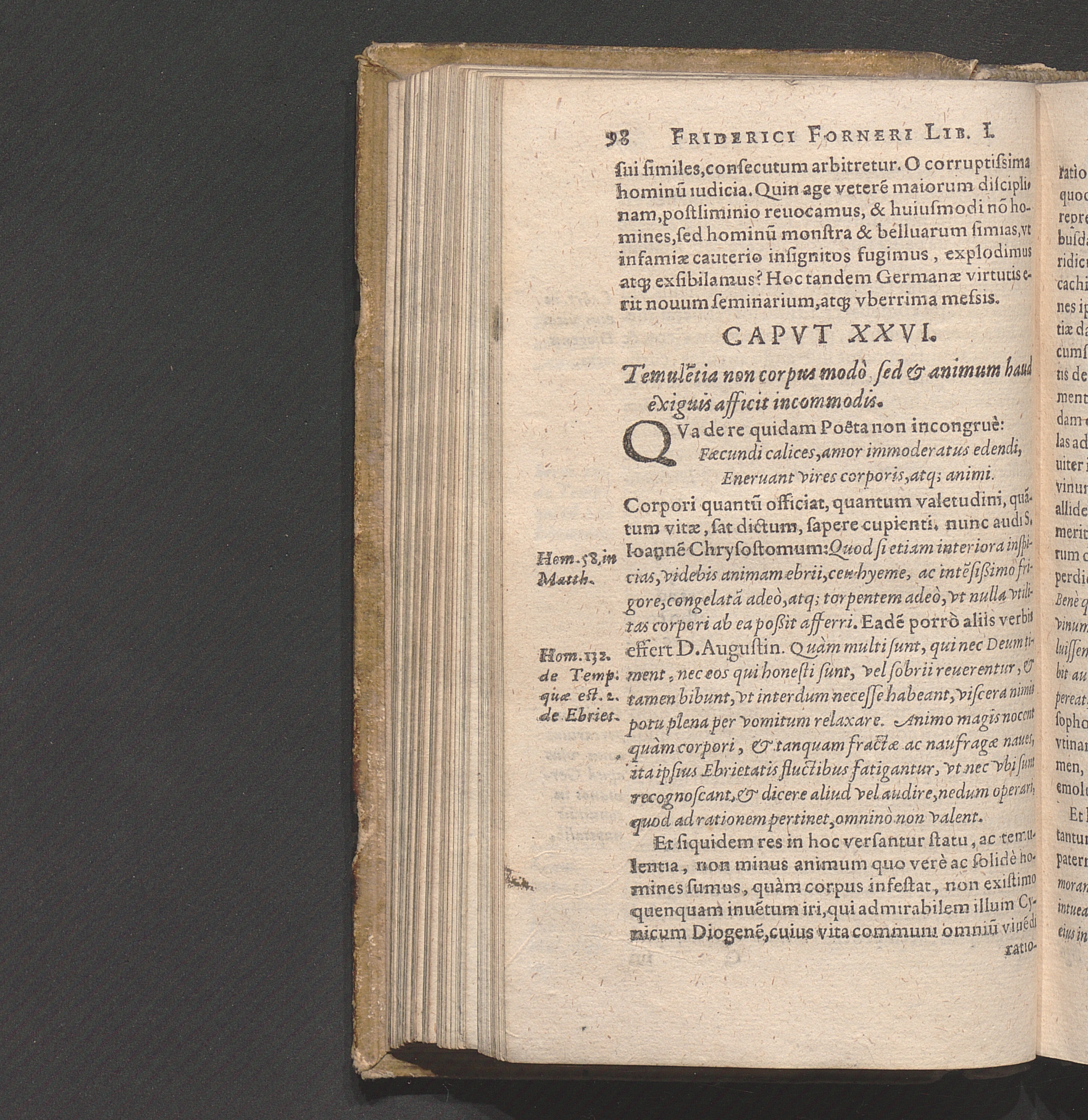 Friderici Forneri Theologiæ Doctoris Canonici Ecclesiæ Collegiatæ diui Stephani Bambergæ, De Temvlentiæ Malo, Eivsqve Remediis, Variis Item Scitv Ivcvndissimis, nec non vtilissimis de rebus, quæ in vini vsu, tùm laudabili ac sobrio, tùm execrando abusu cernuntur; De conuiuiorum luxu demùm, & eorum licitis illicitisúe cupedijs, apparatibus, parergis, & animi relaxationibus Libri IIII. : E Qvamplvrimis, Tvm Sacris, Tvm Prophanis Avthoribus, qui suismet verbis, sententijs, historijs, locotenus paßim allegantur, haud mediocri labore congesti