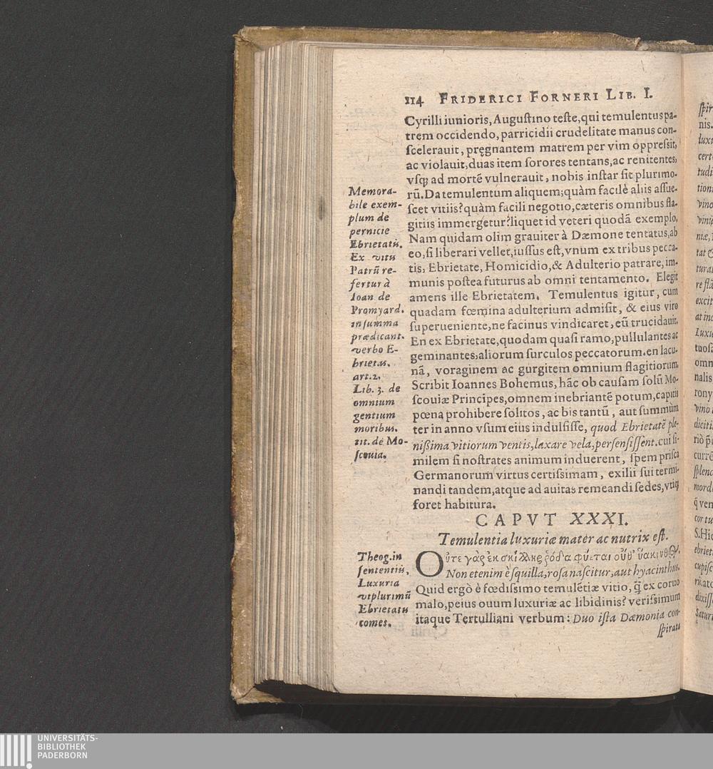 Friderici Forneri Theologiæ Doctoris Canonici Ecclesiæ Collegiatæ diui Stephani Bambergæ, De Temvlentiæ Malo, Eivsqve Remediis, Variis Item Scitv Ivcvndissimis, nec non vtilissimis de rebus, quæ in vini vsu, tùm laudabili ac sobrio, tùm execrando abusu cernuntur; De conuiuiorum luxu demùm, & eorum licitis illicitisúe cupedijs, apparatibus, parergis, & animi relaxationibus Libri IIII. : E Qvamplvrimis, Tvm Sacris, Tvm Prophanis Avthoribus, qui suismet verbis, sententijs, historijs, locotenus paßim allegantur, haud mediocri labore congesti