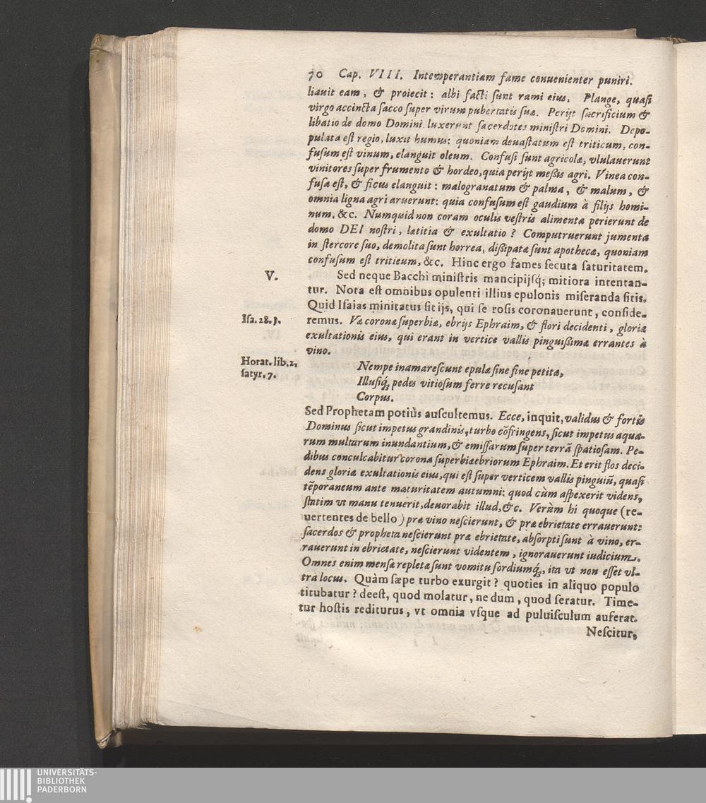 Capvt VIII. Inter cӕtera vitia intemperantiam in cibo & potu conuenientißimè puniri[...]